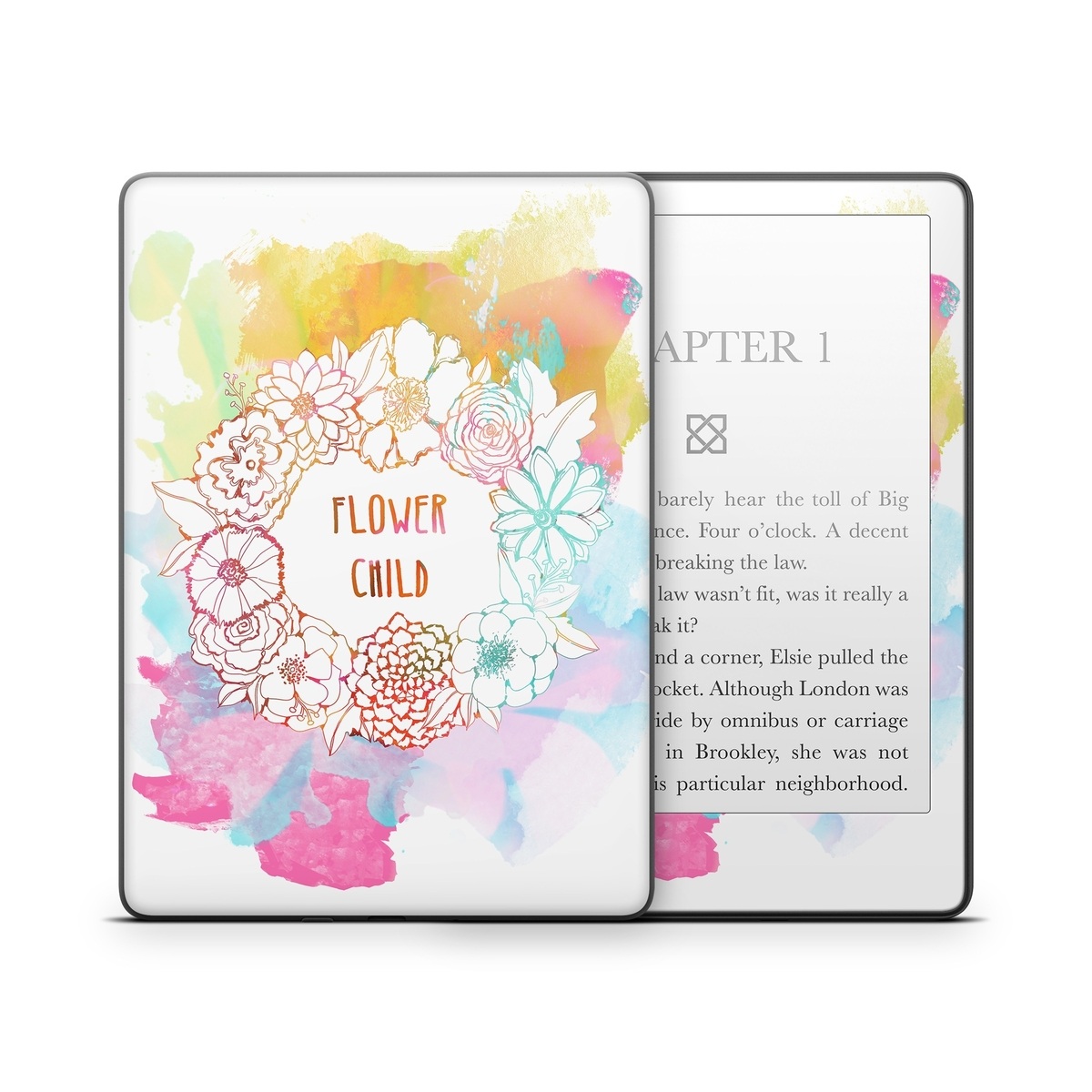 iStyles Amazon Kindle Series Skin design of Heart, Illustration, Clip art, with yellow, orange, pink, blue, red colors, and tagged with signs, flowers, bright, colorful, flowers, freespirit, gypsy.