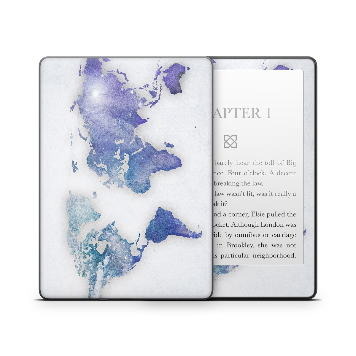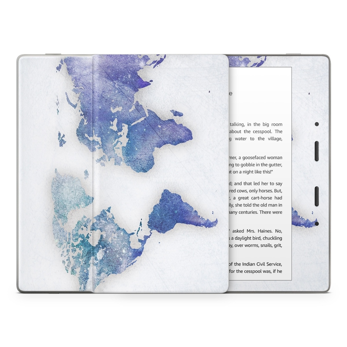 iStyles Amazon Kindle Series Skin design of World, Map, Watercolor paint, Illustration, with white, blue, purple colors, and tagged with maps, globe, map, pastel, travel, watercolor, world.