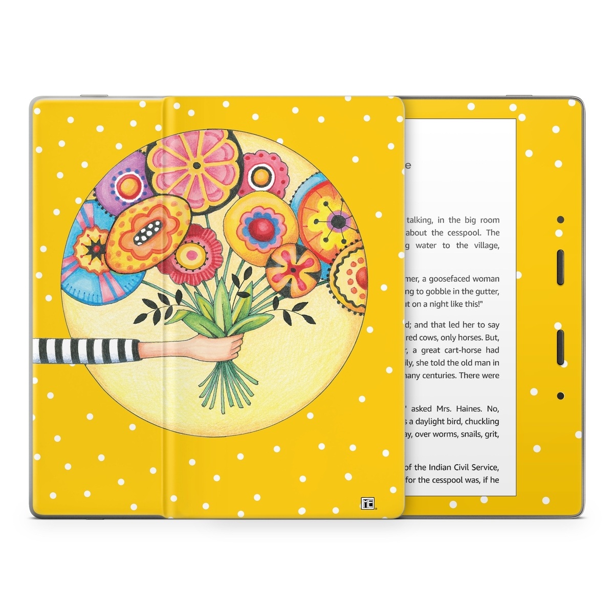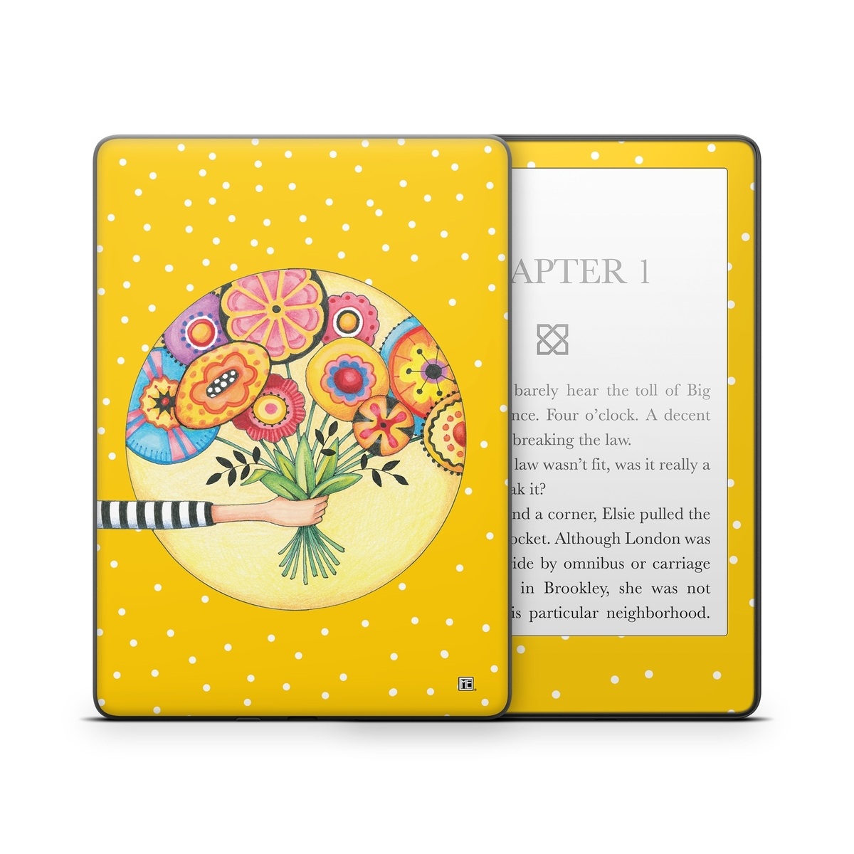 iStyles Amazon Kindle Series Skin design of Circle, Illustration, Clip art, Plant, with orange, yellow, pink, gray, green, black colors, and tagged with patterns, flowers.