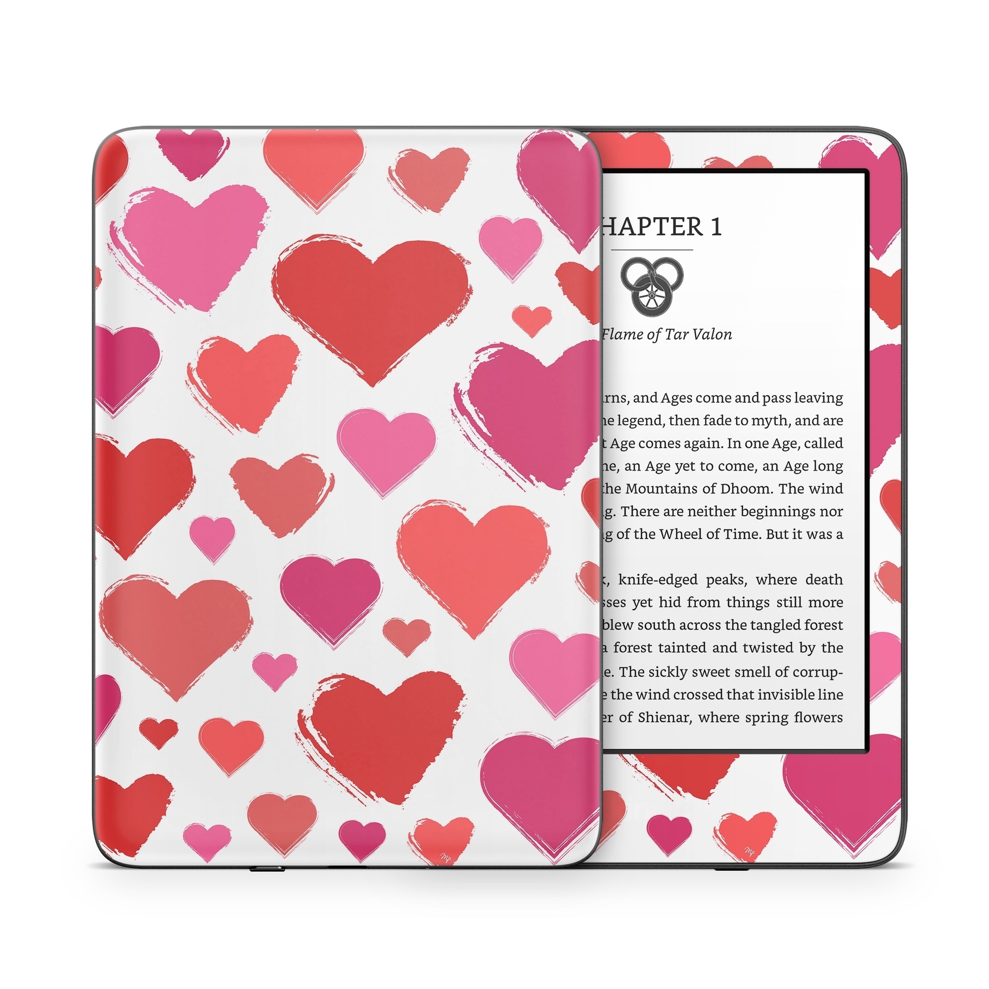 iStyles Amazon Kindle Series Skin design of Photograph, Organ, Human body, Red, Pink, Material property, Pattern, Font, Magenta, Heart, with white, red, pink colors, and tagged with hearts, patterns, many, hearts, pattern, love, valentine.