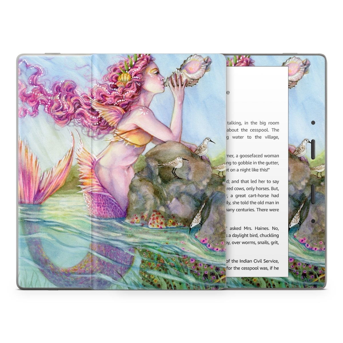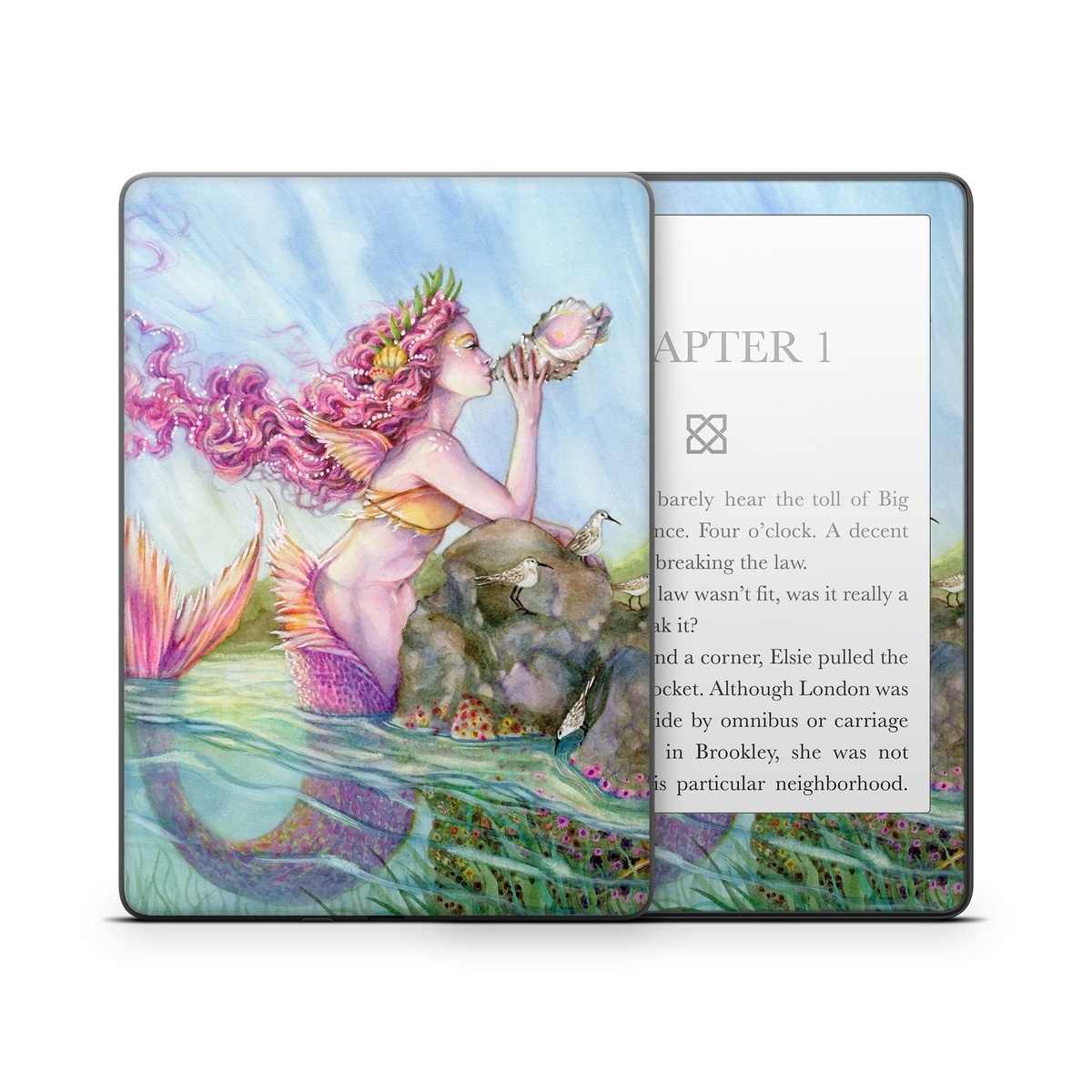 iStyles Amazon Kindle Series Skin design of Cg artwork, Mythology, Illustration, Fictional character, Watercolor paint, Art, Painting, Plant, Mythical creature, with blue, pink, purple, green, gray colors, and tagged with people, fantasy, animals, nature, objects, beach, fantasy, mermaid, mermaids, ocean, sci-fi, seashells.