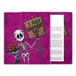 iStyles Amazon Kindle Series Skin design of Purple, Pink, Violet, Magenta, Font, Tints and shades, Art, Electric blue, Skull, Rectangle, with white, gray, pink, red, green, brown, black colors, and tagged with skulls, flowers, objects, signs, flowers, love, message.