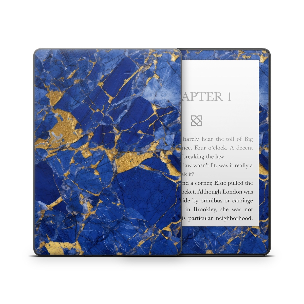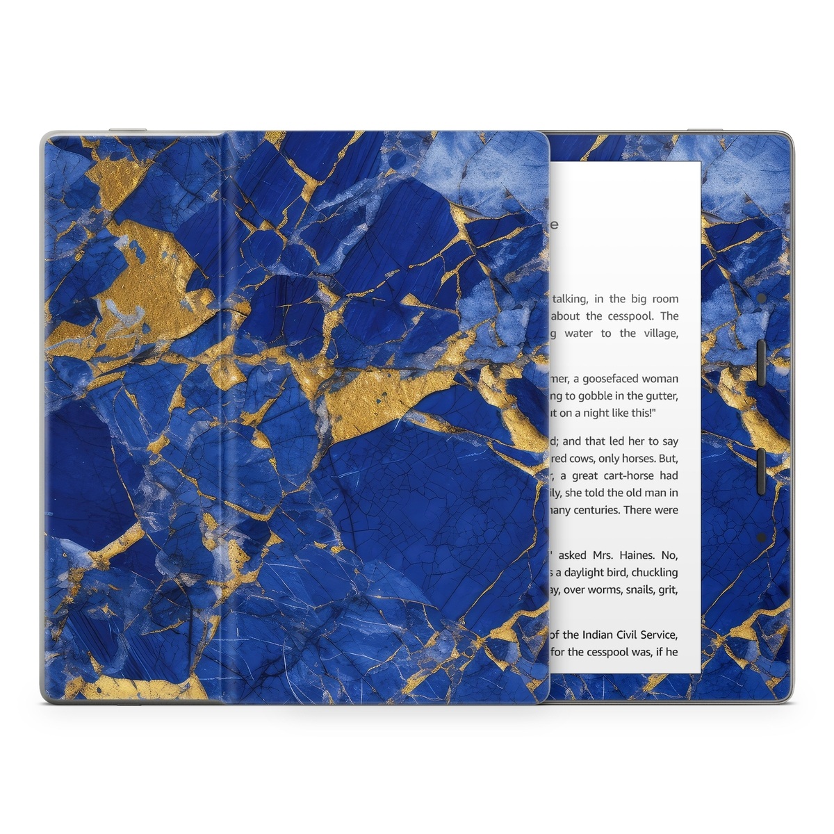 iStyles Amazon Kindle Series Skin design of Liquid, Blue, Azure, Fluid, Pattern, Electric blue, Tints and shades, Transparent material, Water, Symmetry, with blue, yellow, brown, orange colors, and tagged with patterns, lookslike, deep-blue, metamorphic, rock, semi-precious, stone, antiquity, intense, blue, color.