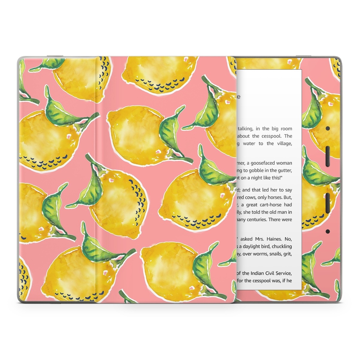 iStyles Amazon Kindle Series Skin design of Yellow, Plant, with yellow, green, pink colors, and tagged with patterns, objects, bright, food, fruit, lemon, pattern, summer, trendy.