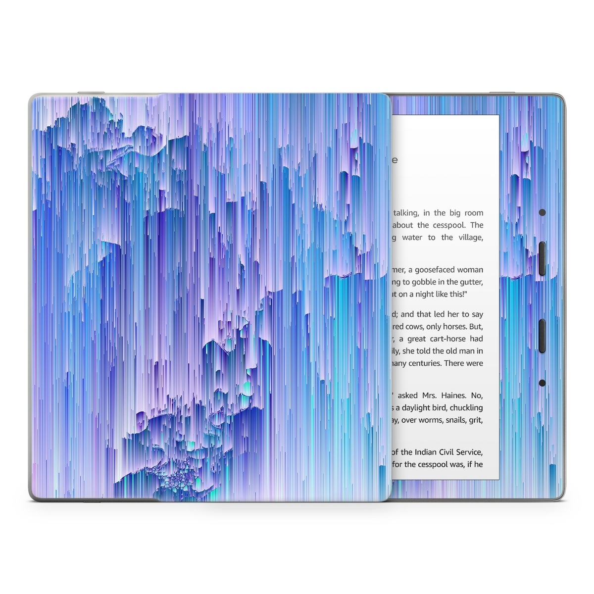 iStyles Amazon Kindle Series Skin design of Blue, Purple, Lavender, Ice, with blue, purple colors, and tagged with abstract, space, blue, geometric, geometry, glitch, green, line, pastel, purple, space, teal.