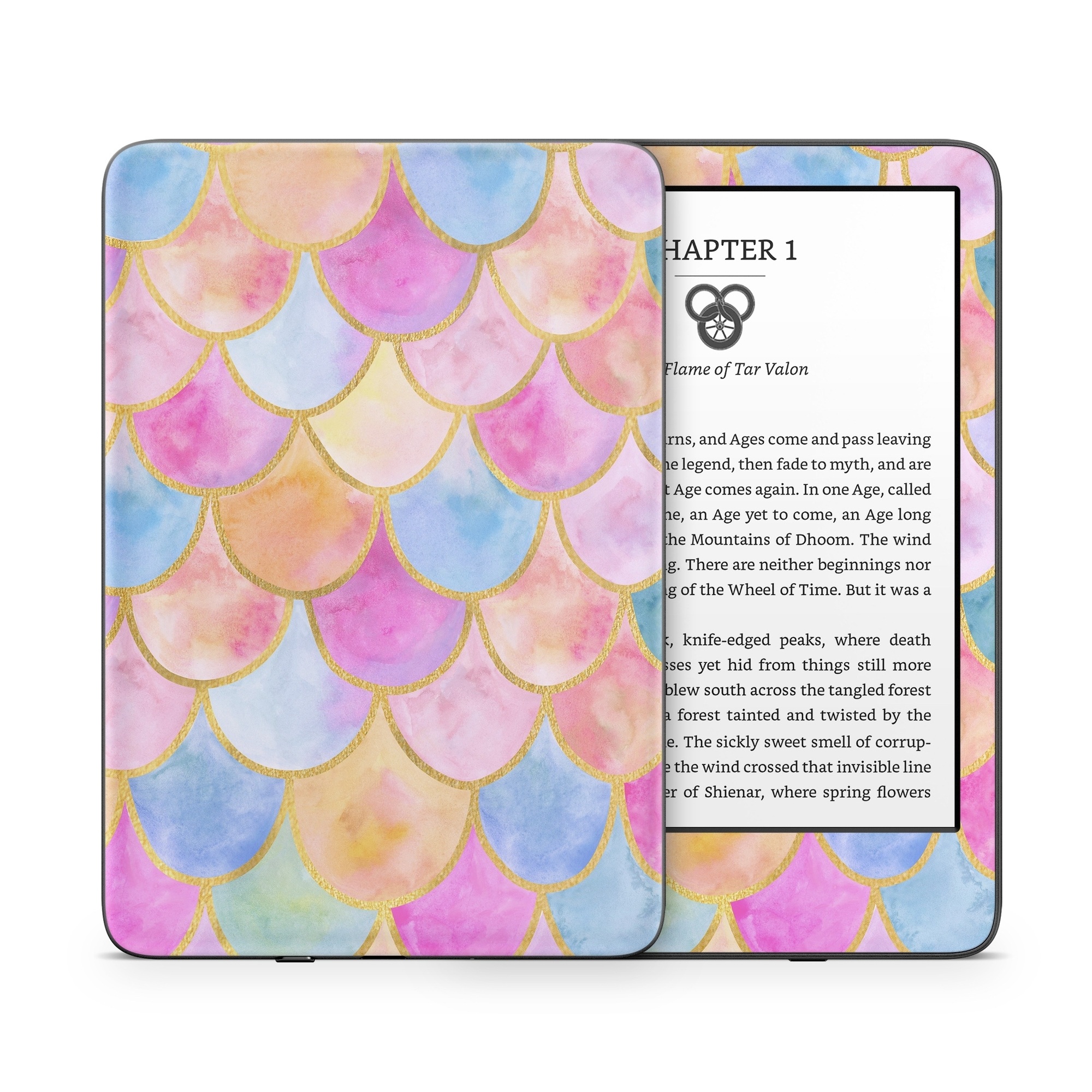 iStyles Amazon Kindle Series Skin design of Colorfulness, Natural material, Pink, Art, Line, Magenta, Red, Creative arts, Circle, Pattern, with pink, purple, blue, orange, yellow, white colors, and tagged with patterns, lookslike, mermaid, fish, colorful, fantasy.