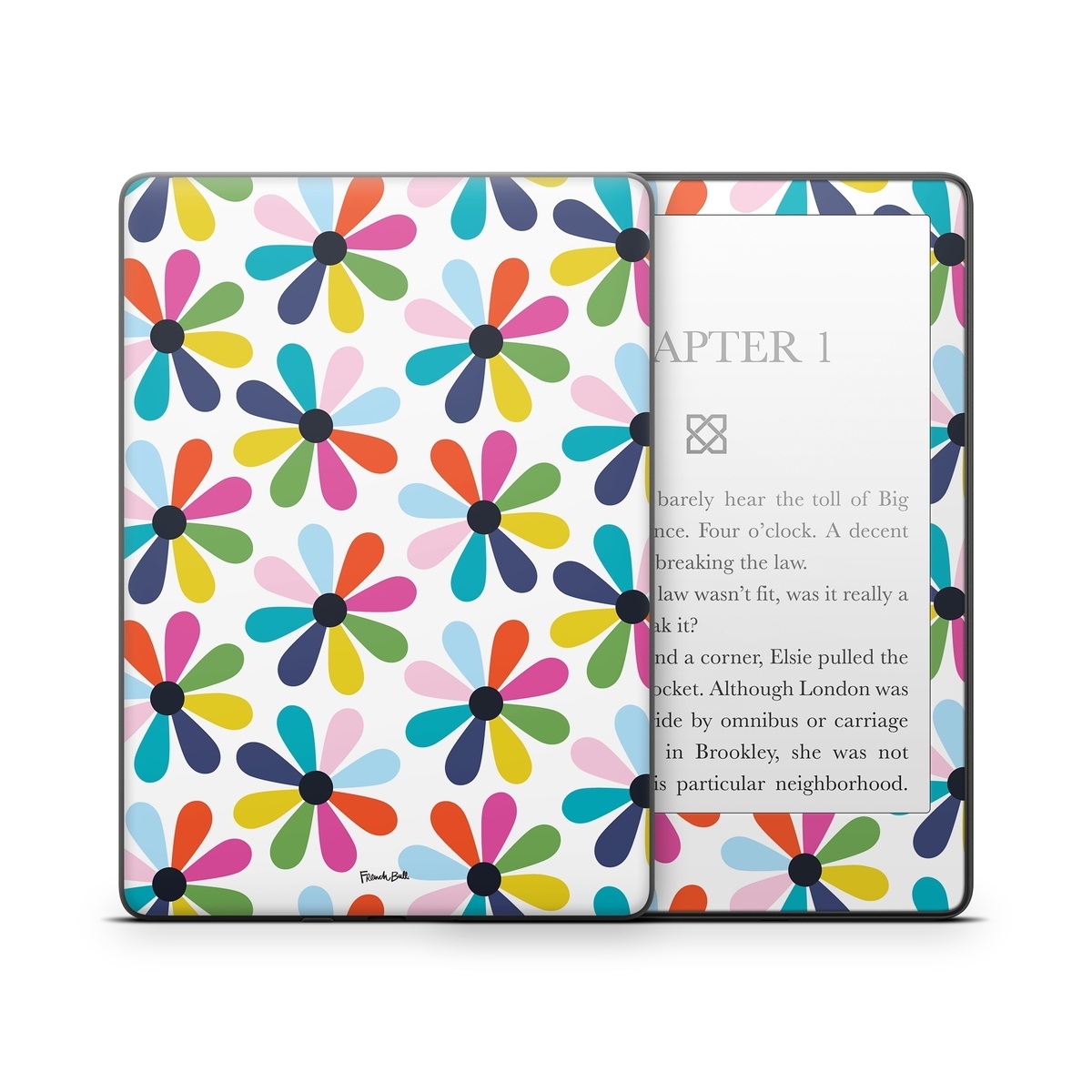 iStyles Amazon Kindle Series Skin design of Colorfulness, Aqua, Symmetry, Pattern, Electric blue, Art, Circle, Visual arts, Tints and shades, Wrapping paper, with white, red, blue, pink, purple, green colors, and tagged with patterns, flowers, dainty, daisy, delicate, floral, flower, flowers, garden, multi, multicolor, pattern, rainbow.