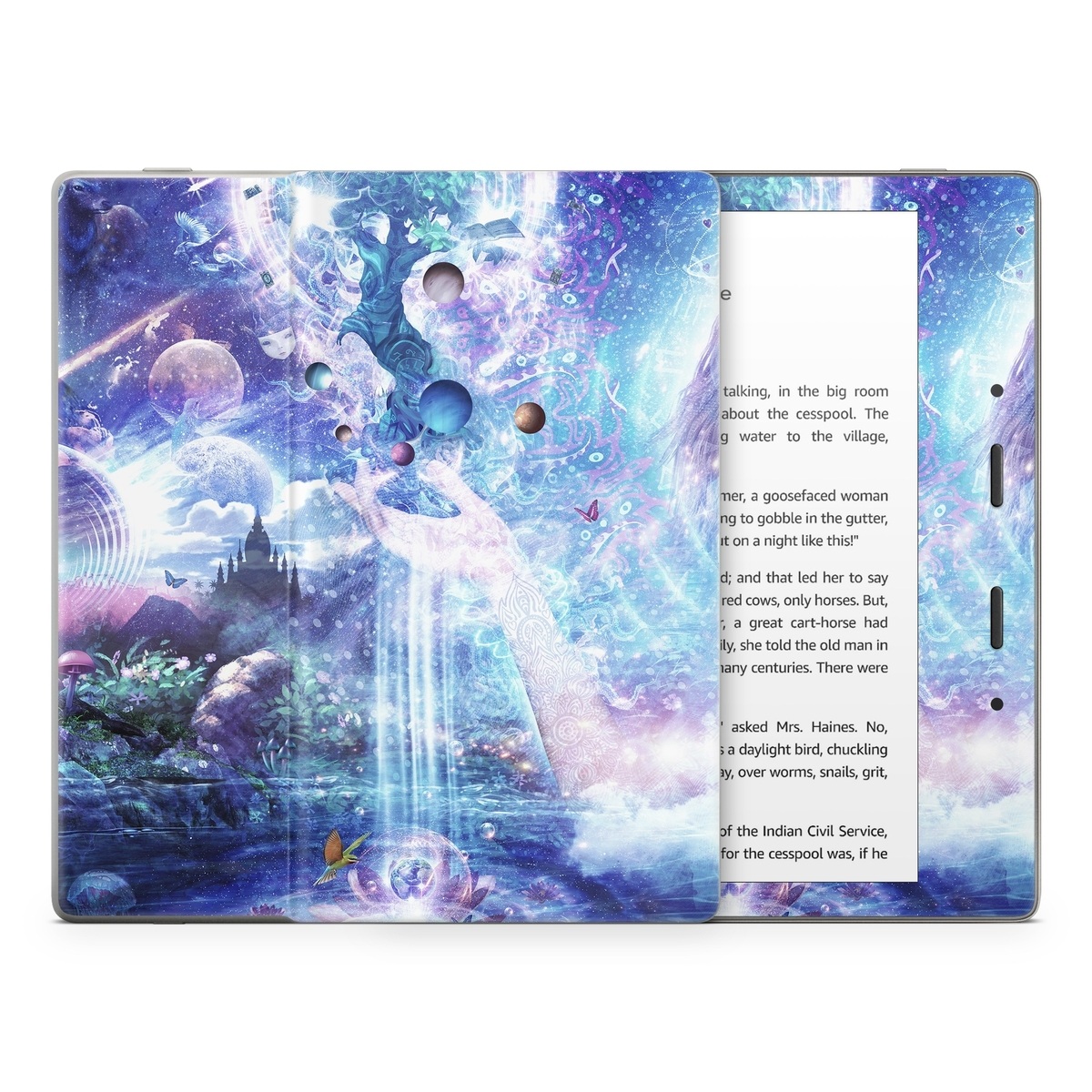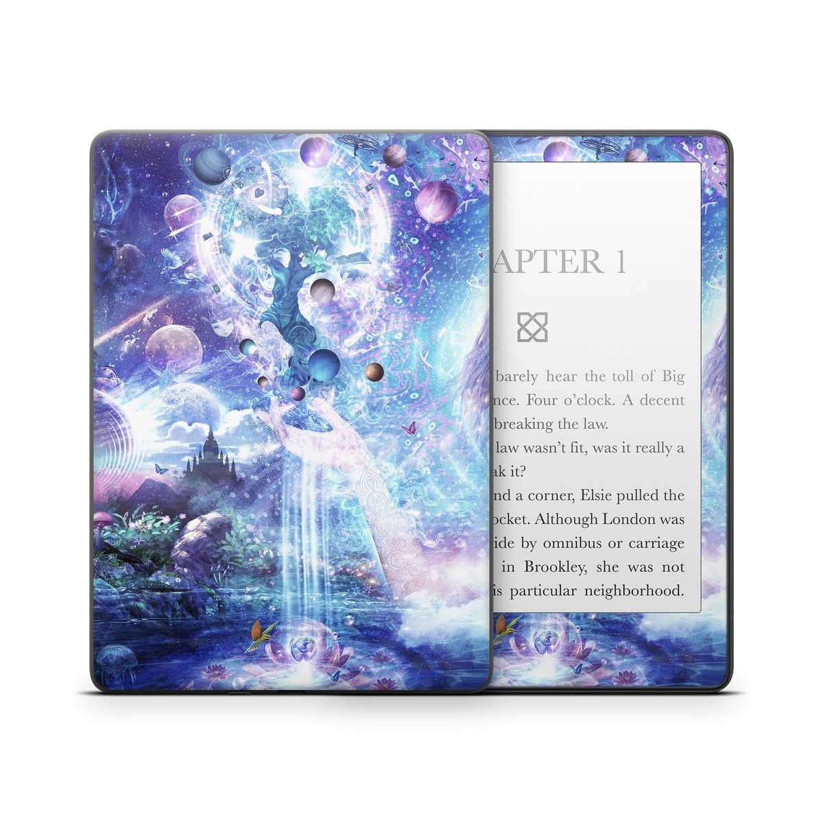 iStyles Amazon Kindle Series Skin design of Bird, Butterfly, Planets, Deer, Space, Purple, World, Astronomical Object, Cg Artwork, Illustration, Universe, Painting, Fictional Character, Outer Space, Astronomy, Science, Water Feature, Graphic Design, Graphics, Star, Mythology, with blue, purple, white, black, gray, green colors, and tagged with space, fantasy, animals, nature, urban, people, objects, flowers, fantasy, landscape, nature, sci-fi, tree, trees.