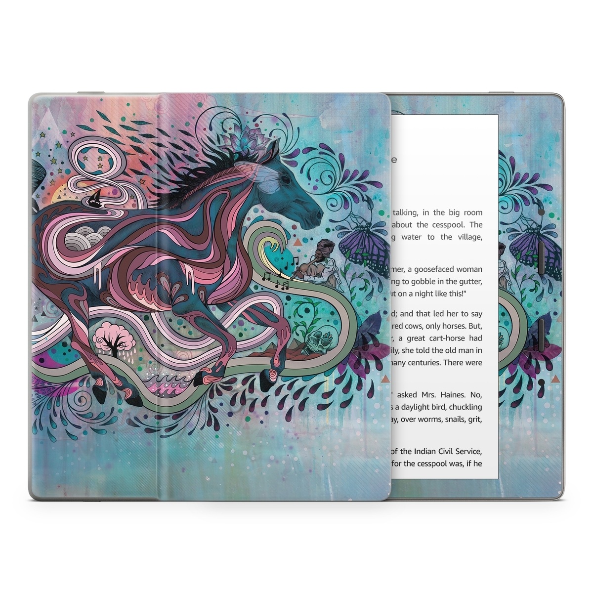 iStyles Amazon Kindle Series Skin design of Illustration, Art, Visual arts, Graphic design, Fictional character, Psychedelic art, Pattern, Drawing, Painting, Mythology, with gray, black, blue, red, purple colors, and tagged with animals, patterns, nature.