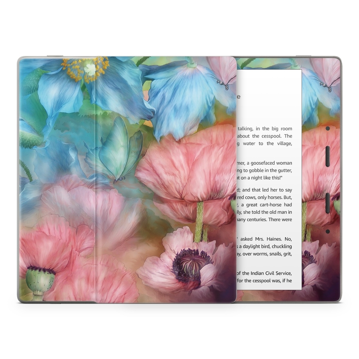 iStyles Amazon Kindle Series Skin design of Flower, Petal, Watercolor paint, Painting, Plant, Flowering plant, Pink, Botany, Wildflower, Still life, with gray, blue, black, red, green colors, and tagged with flowers, animals.