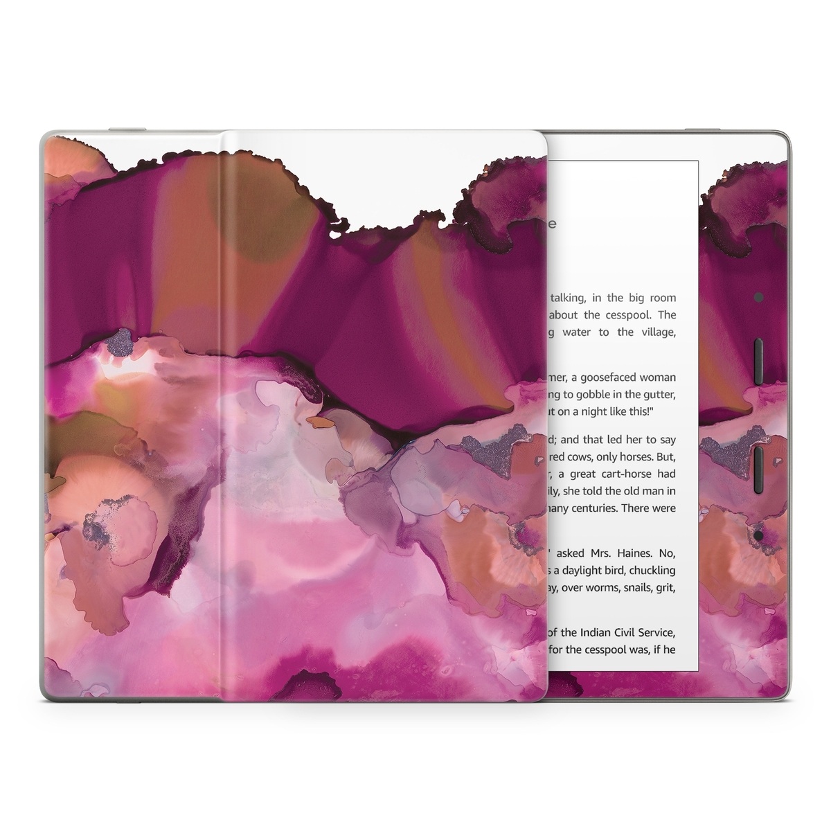 iStyles Amazon Kindle Series Skin design of Purple, Pink, Watercolor paint, Magenta, Illustration, Art, with white, red, pink, white colors, and tagged with abstract, abstract, magenta, marble, marbled, purple, watercolor.