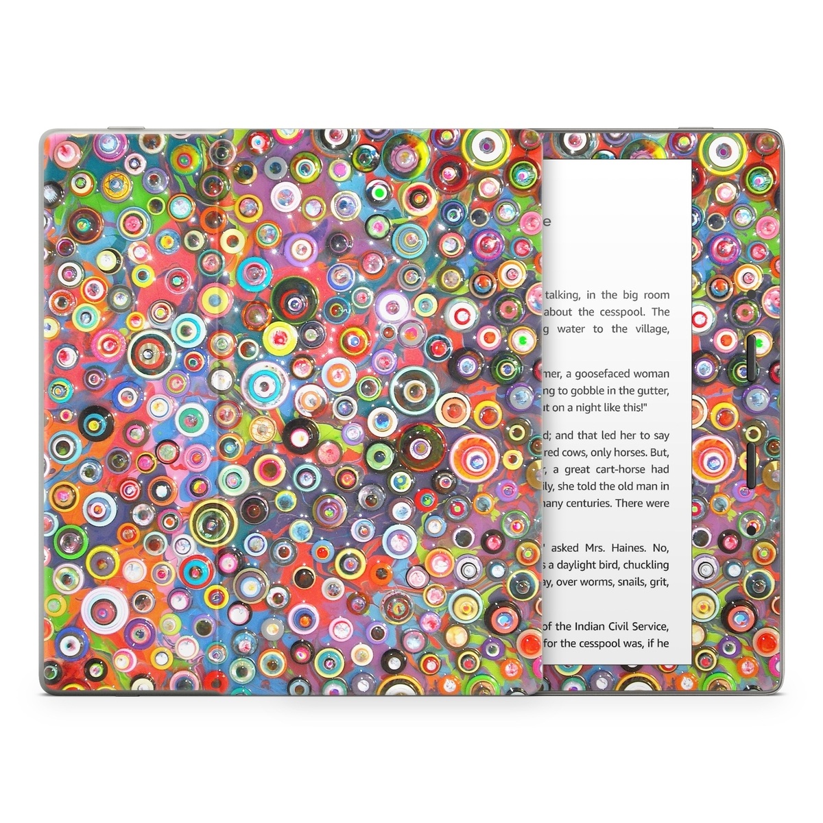 iStyles Amazon Kindle Series Skin design of Pattern, Design, Textile, Visual arts, Circle, Art, with red, pink, blue, green, yellow, blue, orange colors, and tagged with patterns, abstract, bright, circles, colors, dots, pattern.