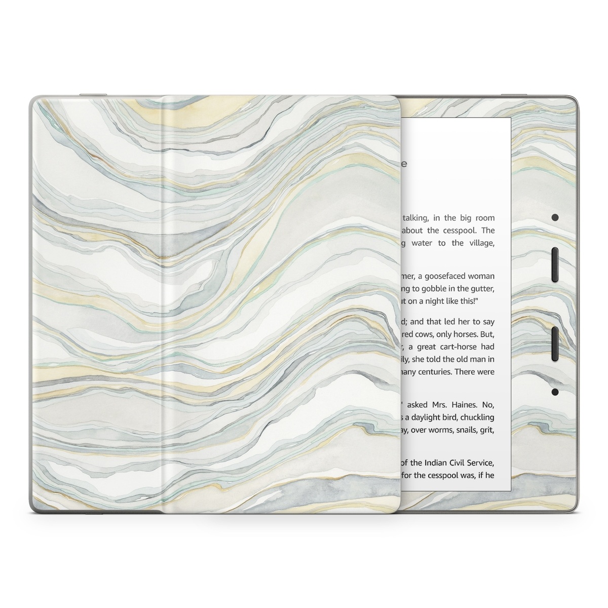 iStyles Amazon Kindle Series Skin design of Line, Pattern, with yellow, white, blue, gray colors, and tagged with patterns, abstract, earthtones, neutral, watercolor.