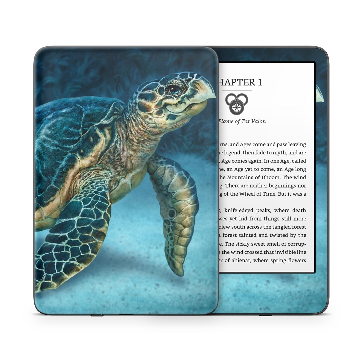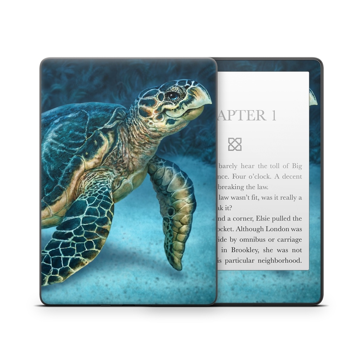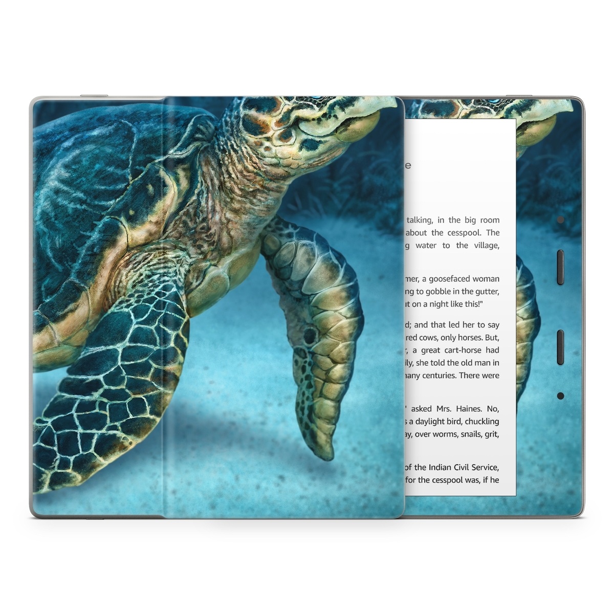 iStyles Amazon Kindle Series Skin design of Water, Nature, Organism, Reptile, Turtle, Hawksbill sea turtle, Underwater, Wildlife, Sea turtle, Reef, with green, gray, blue, white colors, and tagged with animals, nature, animal, animals, aqua, blue, ocean, oceanlife, sea, sealife, seaturtle, turquoise, turtle, turtles, water.