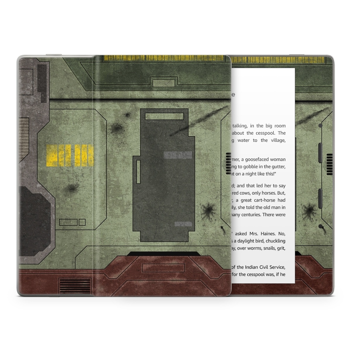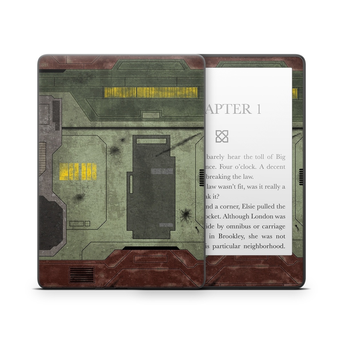 iStyles Amazon Kindle Series Skin design of Rectangle, Screenshot, Font, Wood, Pattern, Symmetry, Machine, Gas, Parallel, Engineering, with red, green, yellow, black, gray, white colors, and tagged with lookslike, space, fantasy, 784D6494-0115-487D-814F-3375F9843825.