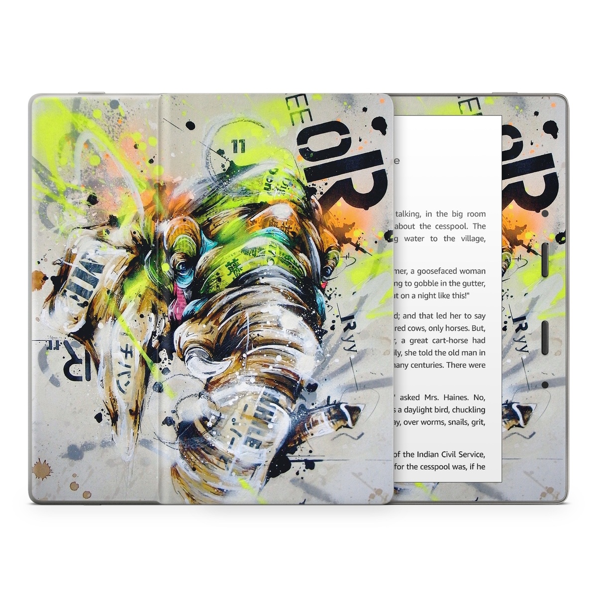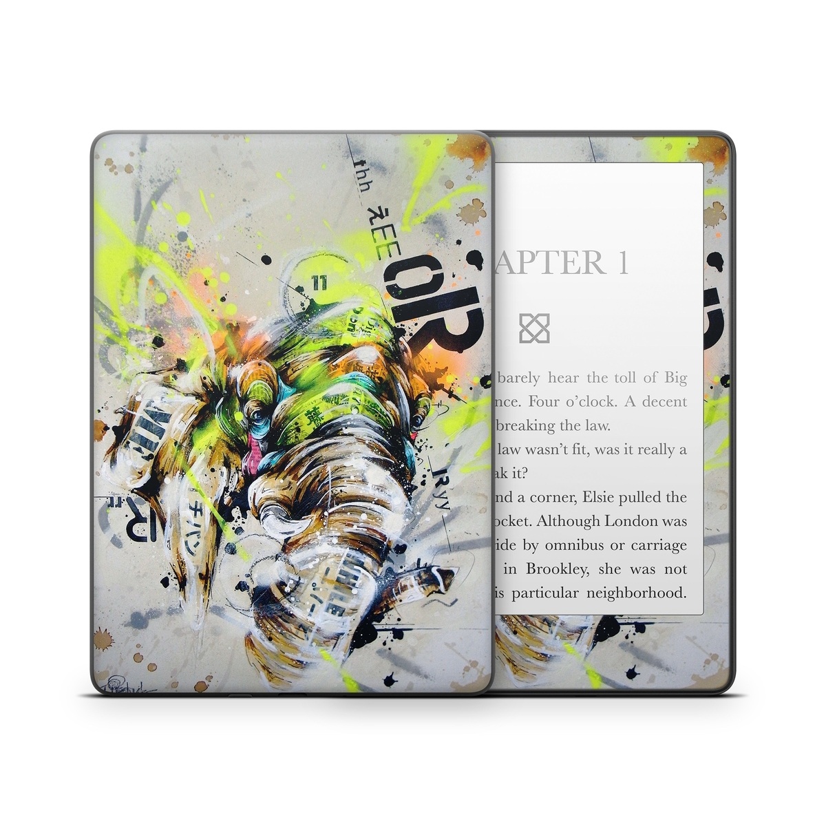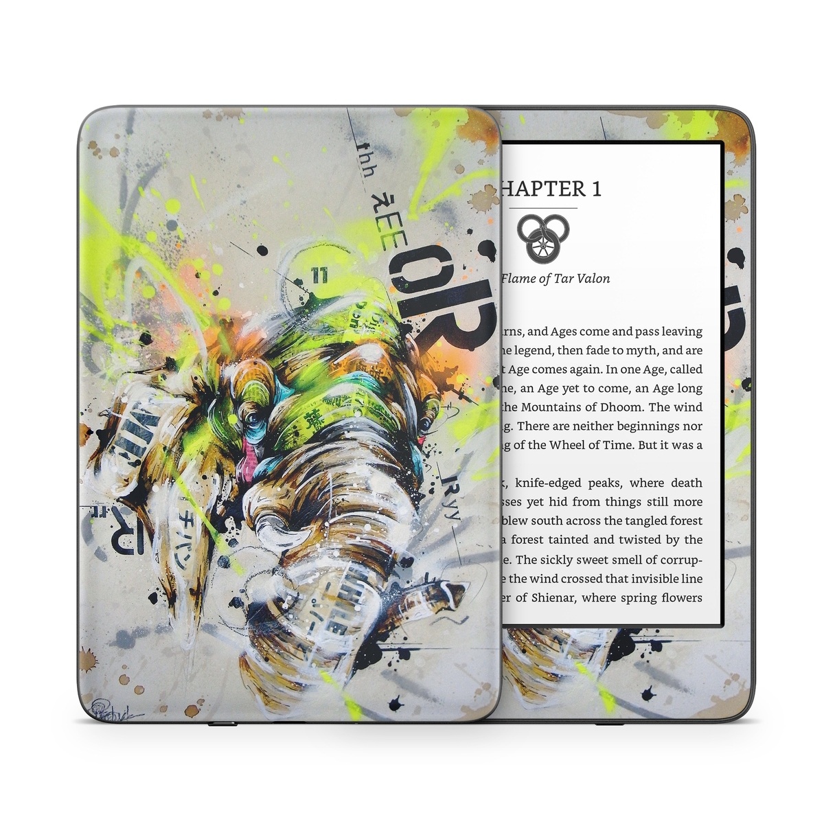 iStyles Amazon Kindle Series Skin design of Watercolor paint, Graphic design, Illustration, Acrylic paint, Art, Modern art, Painting, Visual arts, Paint, Graphics, with gray, black, green, red, blue colors, and tagged with abstract, animals.