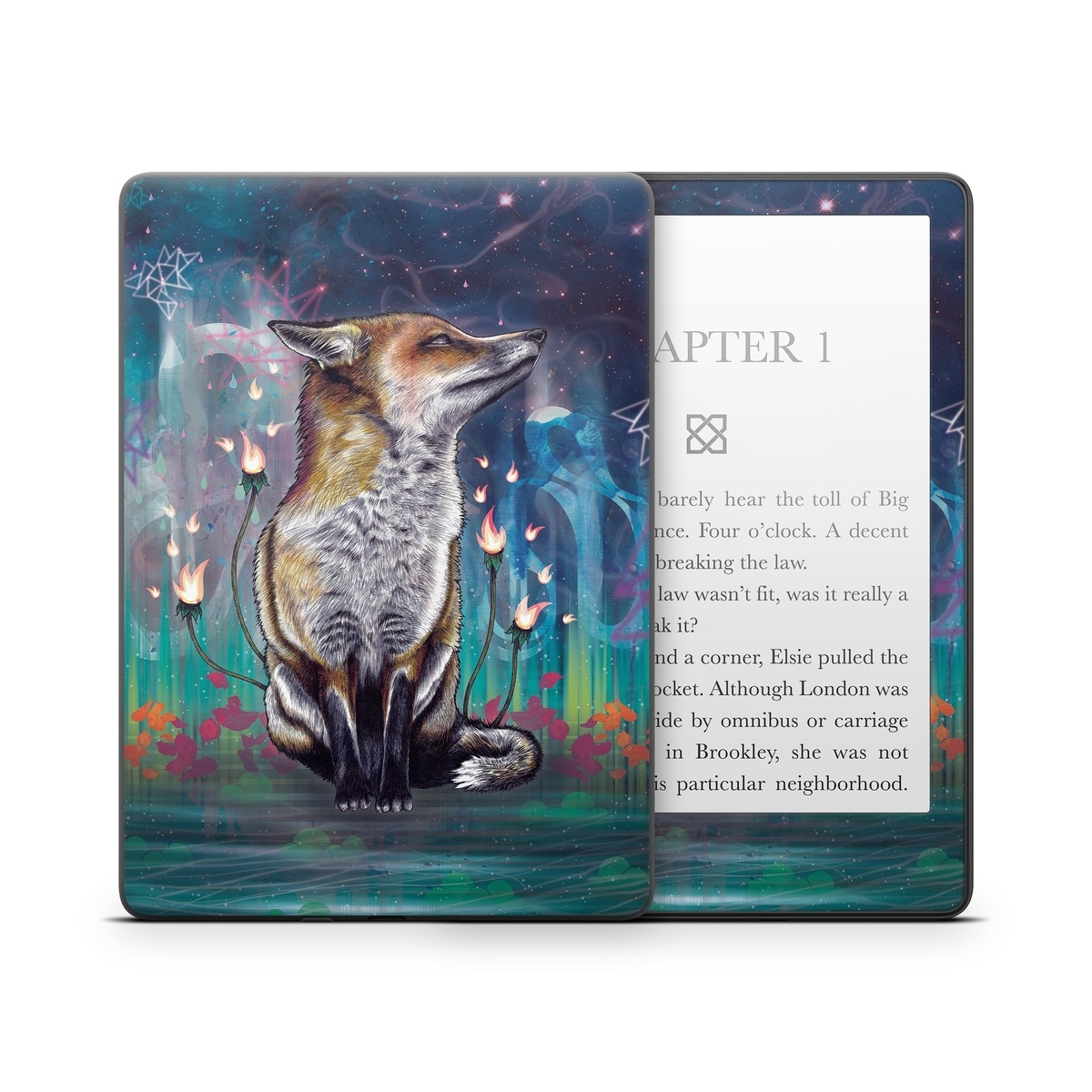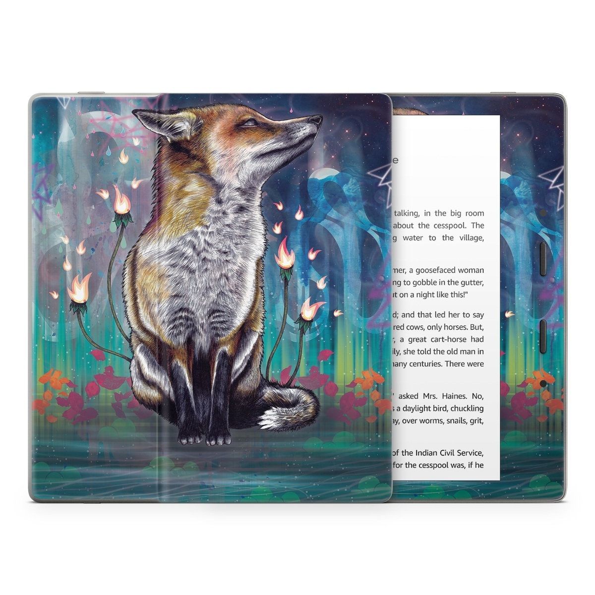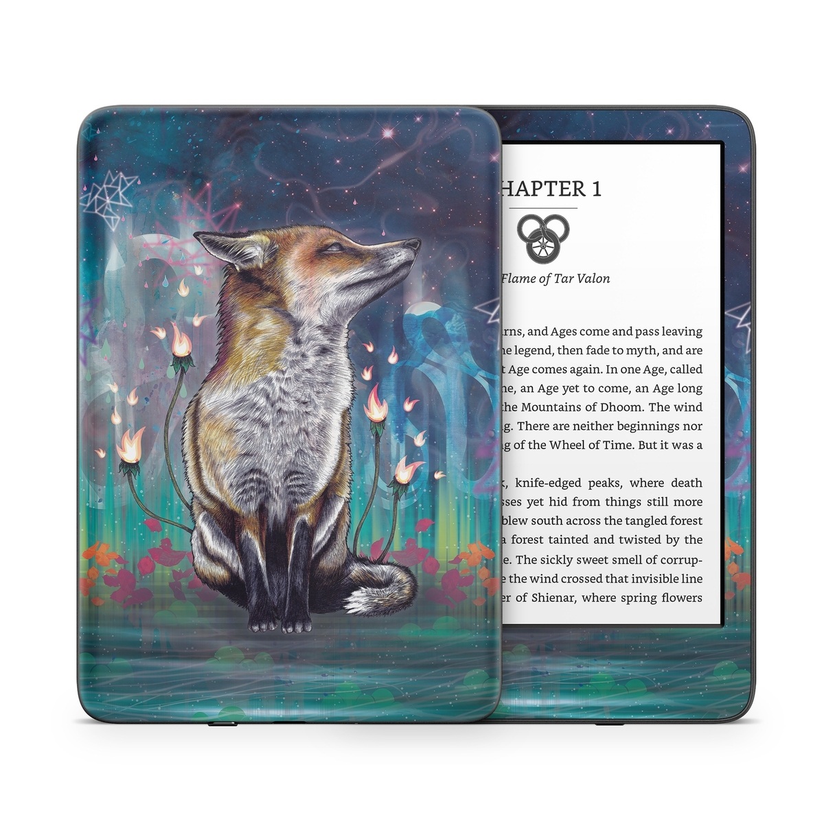 iStyles Amazon Kindle Series Skin design of Red fox, Art, Wildlife, Canidae, Illustration, Fox, Carnivore, Painting, Dhole, Red wolf, with black, gray, blue, red, green colors, and tagged with animals, patterns.