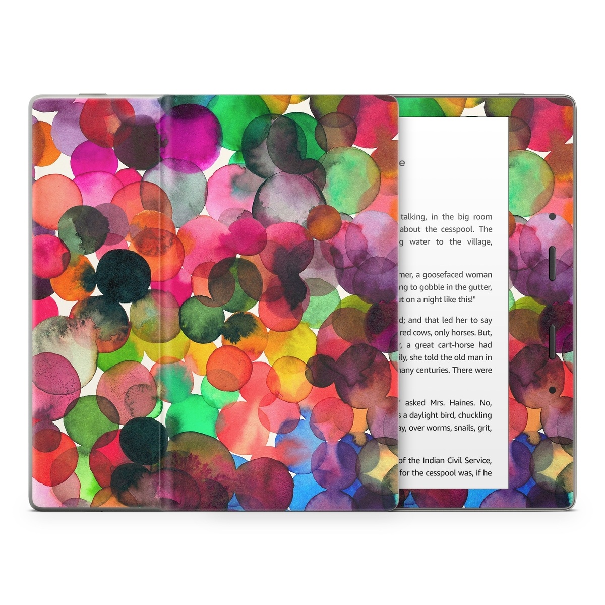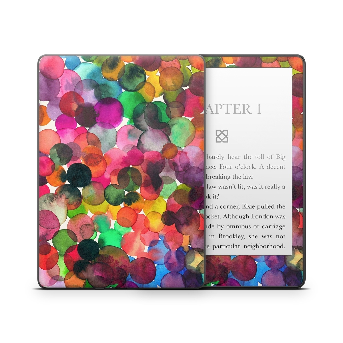 iStyles Amazon Kindle Series Skin design of Colorfulness, Fashion accessory, with red, white, pink, purple, blue, green, black, yellow, orange colors, and tagged with patterns, abstract, bright, colorful, dots, drops, vivid, watercolor.