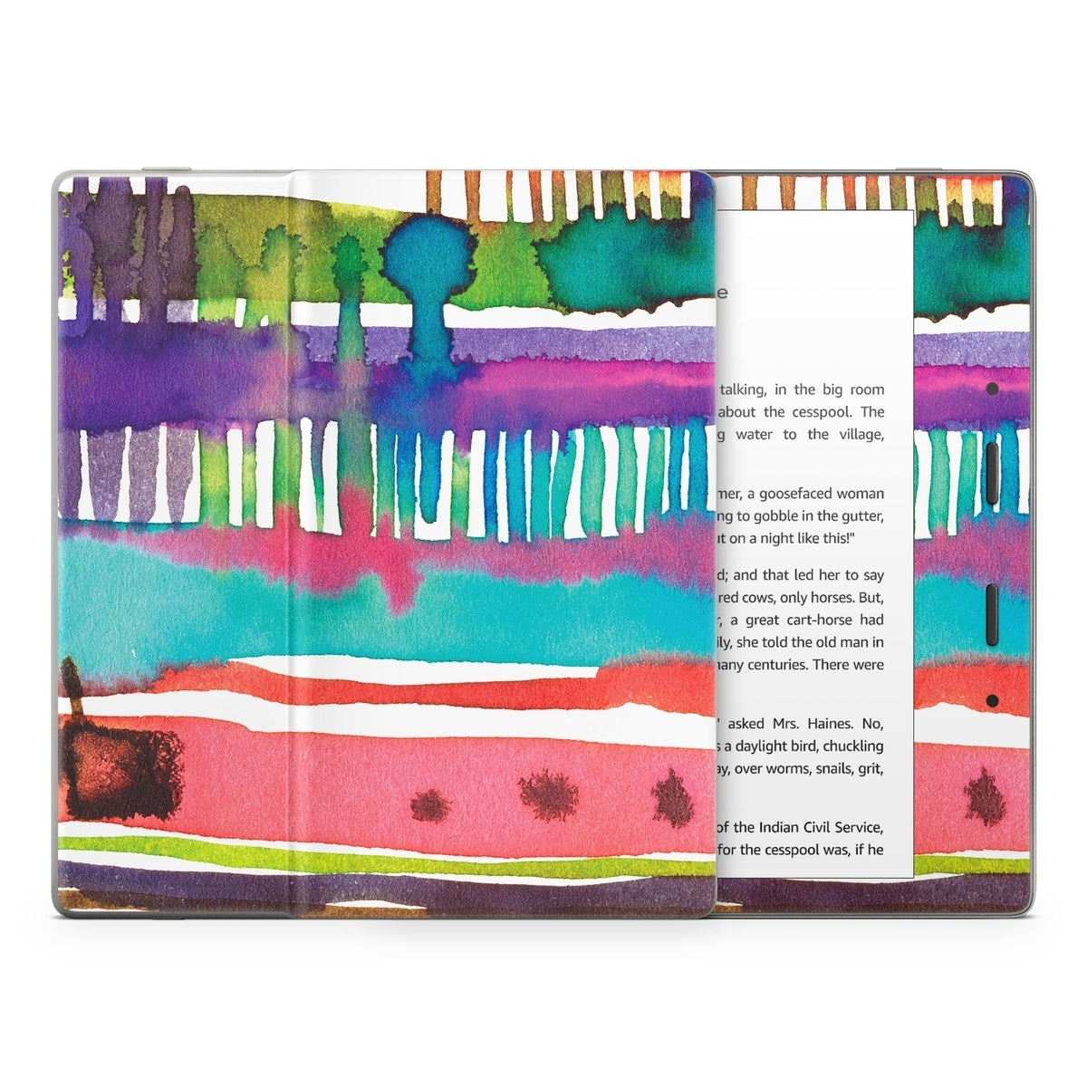 iStyles Amazon Kindle Series Skin design of Textile, Art, Magenta, Hair accessory, with white, red, orange, yellow, green, blue, purple, brown, pink colors, and tagged with patterns, abstract, abstract, bright, colorful, nature, watercolor.