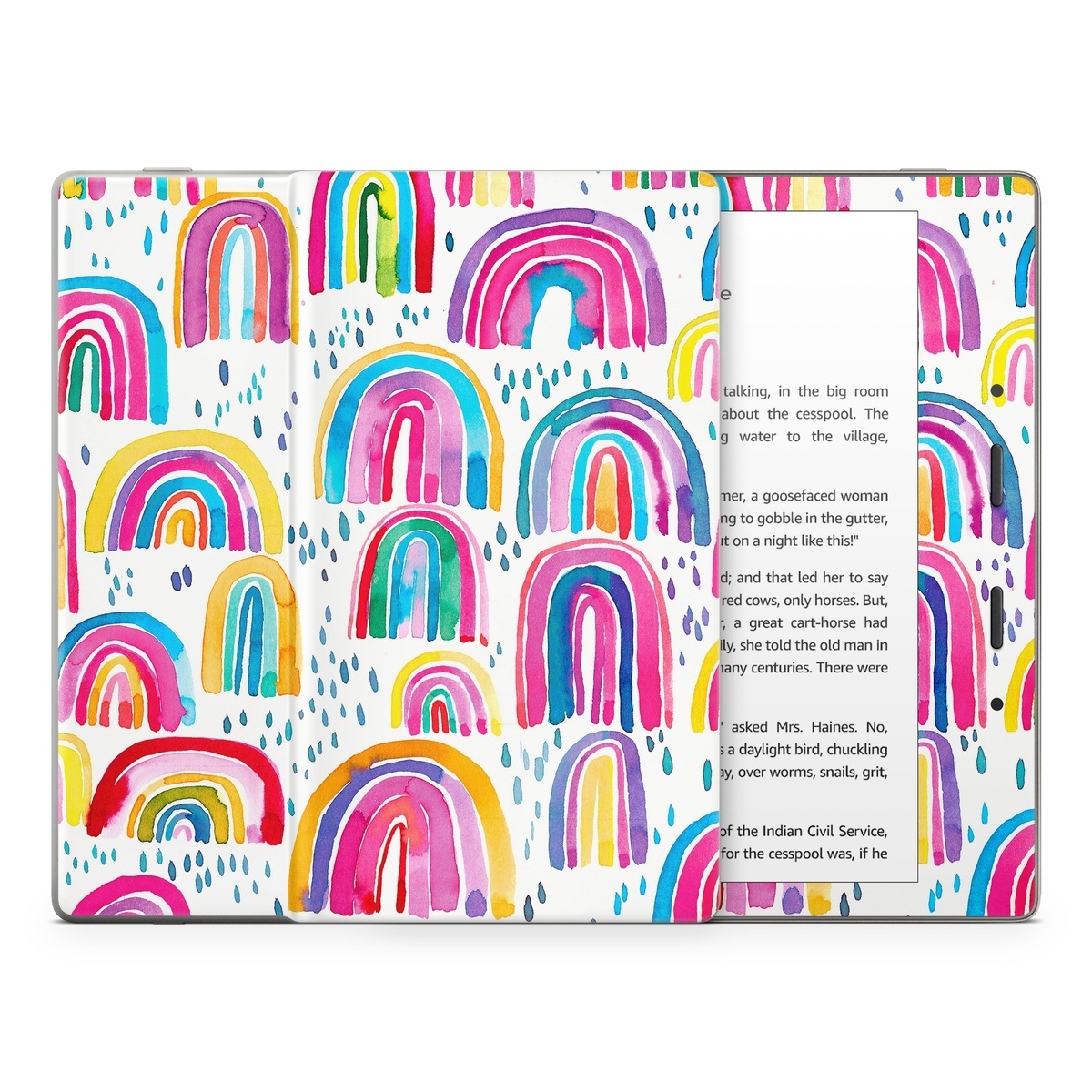 iStyles Amazon Kindle Series Skin design of Line, Pattern, Design, with white, orange, yellow, blue, pink, red, green colors, and tagged with patterns, nature, abstract, abstract, bright, colorful, rain, nature, rainbow, watercolor.