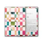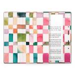iStyles Amazon Kindle Series Skin design of Brown, Rectangle, Product, Textile, Art, Pink, Line, Aqua, Magenta, Symmetry, with white, pink, green, red, blue, orange, purple colors, and tagged with patterns, checkers, geometric, pattern, shapes, squares, watercolor.