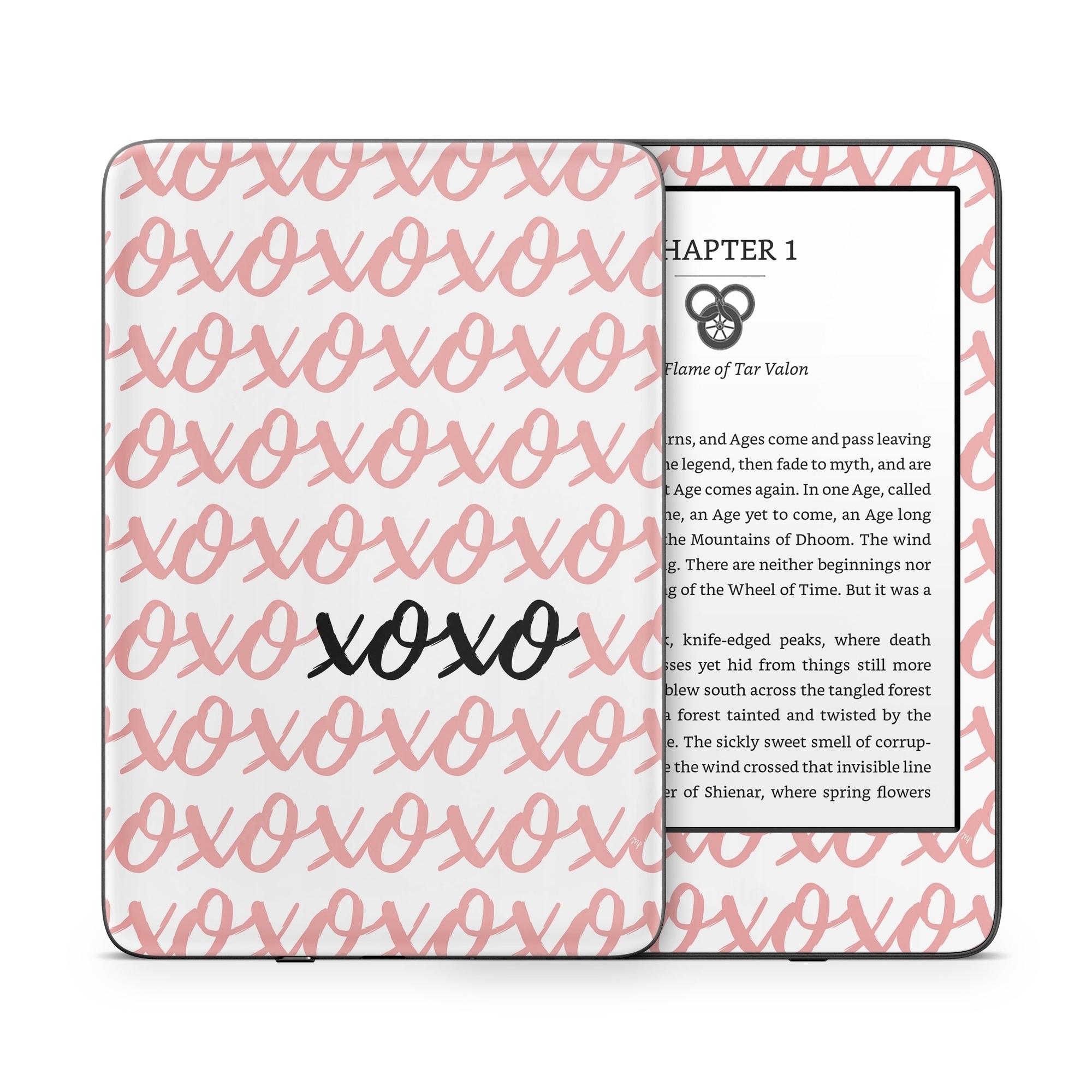 iStyles Amazon Kindle Series Skin design of Font, Pattern, Magenta, Art, Event, Calligraphy, with white, pink, black colors, and tagged with signs, patterns, love, kisses, valentine.