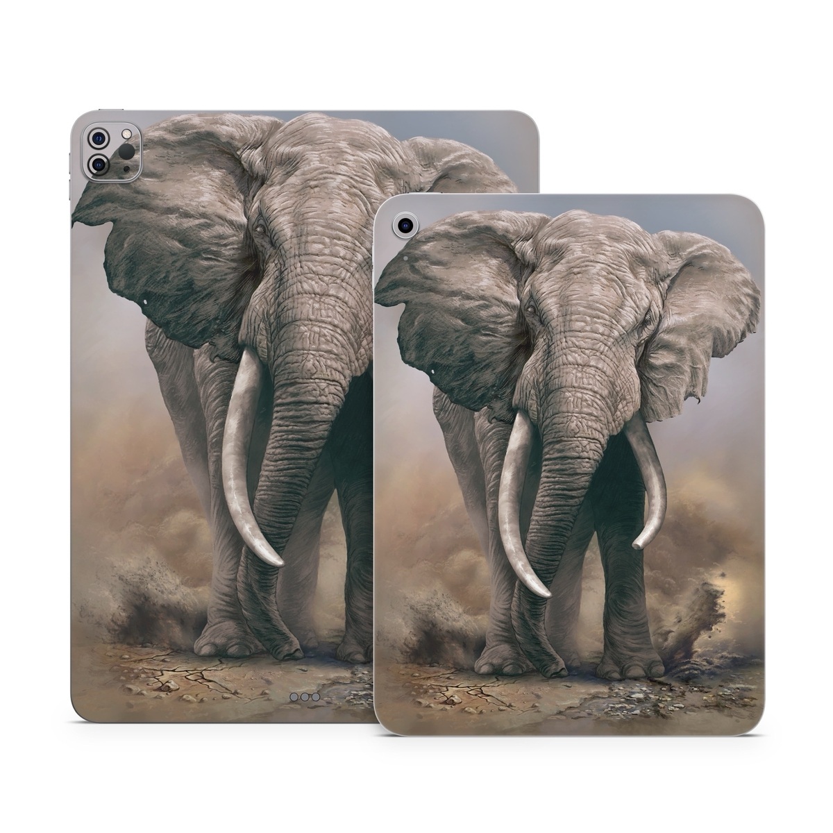 iStyles Apple iPad Series Skin design of Elephants and Mammoths, Terrestrial animal, Indian elephant, African elephant, Wildlife, Tusk, Snout, Organism, Working animal, Illustration, with brown, gray, white colors, and tagged with animals, animals, elephant, nature.