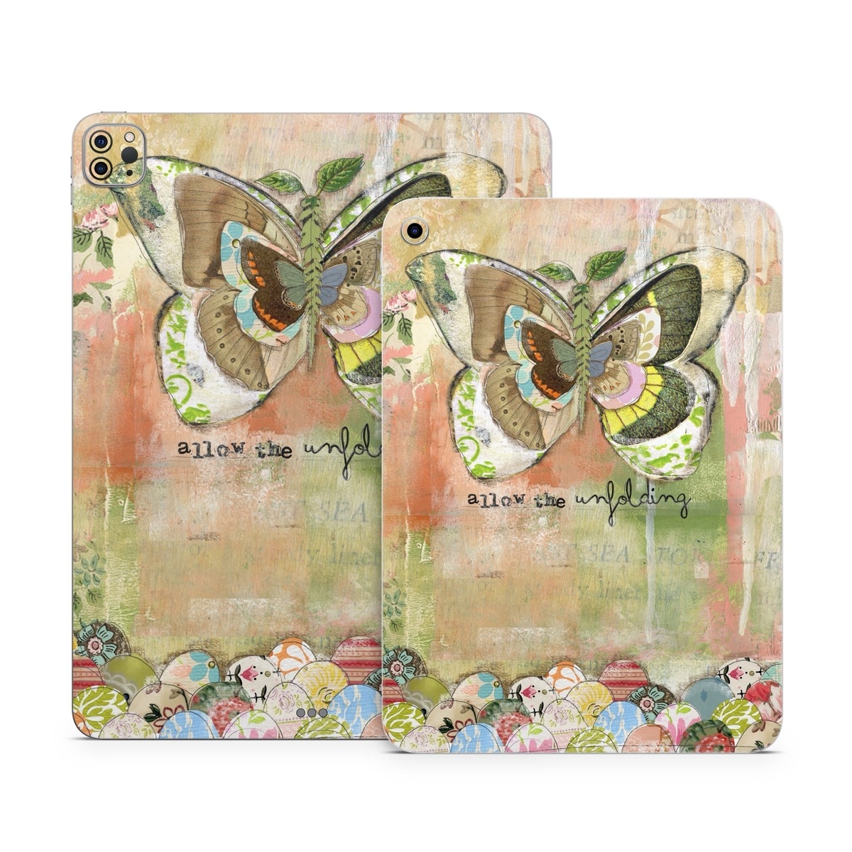 iStyles Apple iPad Series Skin design of Butterfly, Art, Fictional character, Pollinator, Moths and butterflies, Watercolor paint, Illustration, with green, brown, yellow, blue, pink, red colors, and tagged with signs, flowers, animals.