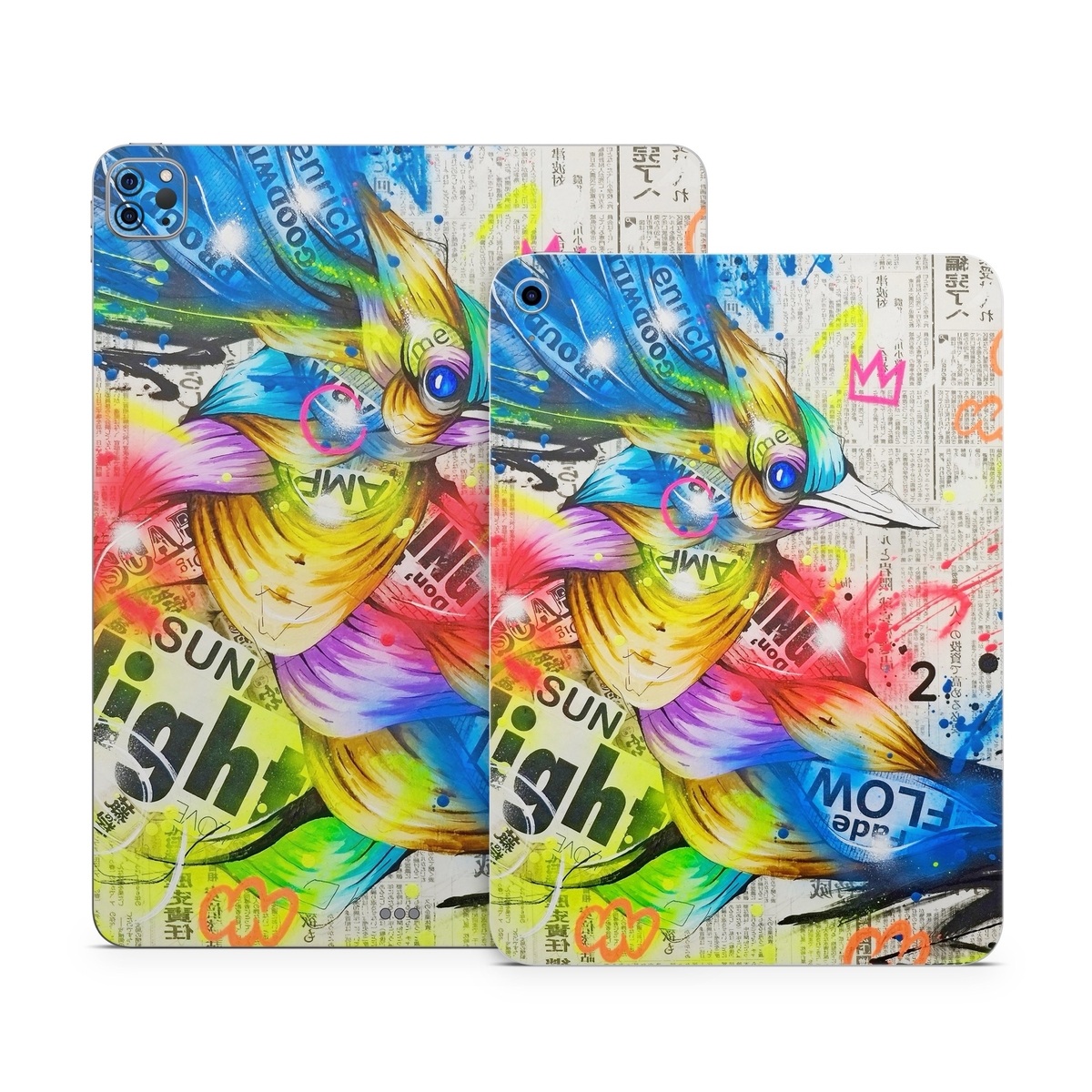 iStyles Apple iPad Series Skin design of Graphic design, Font, Art, Graphics, Illustration, with blue, red, orange, pink, white, black, yellow, green colors, and tagged with animals, abstract, signs.