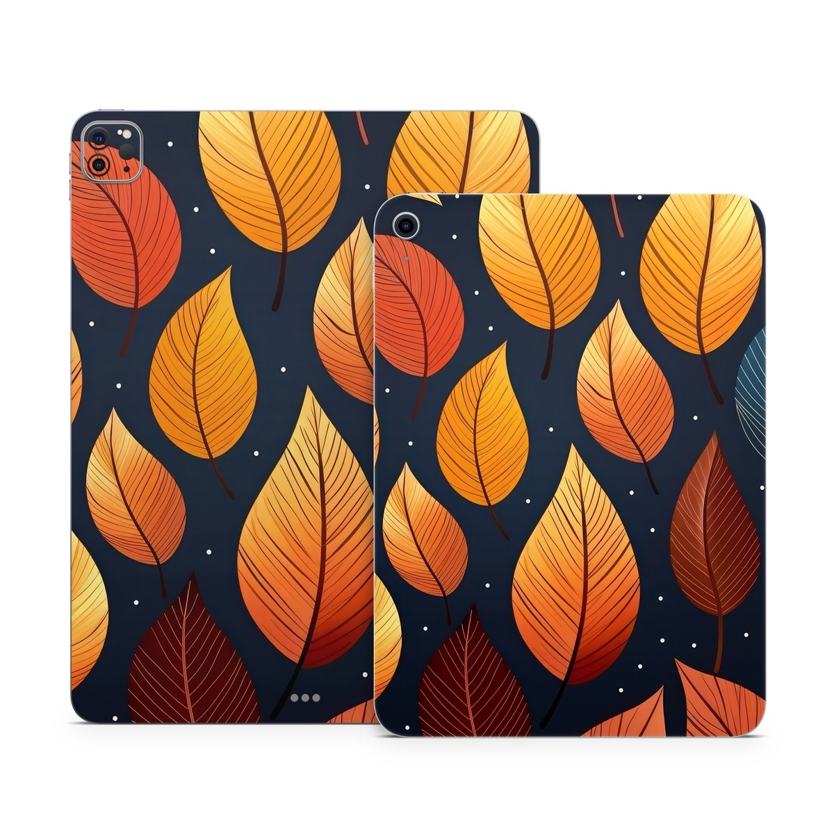 iStyles Apple iPad Series Skin design of Amber, Orange, Lighting, Sunlight, Font, Art, Material property, Symmetry, Wood, Circle, with yellow, orange, black, white, red colors, and tagged with nature, patterns, fall, leaves.