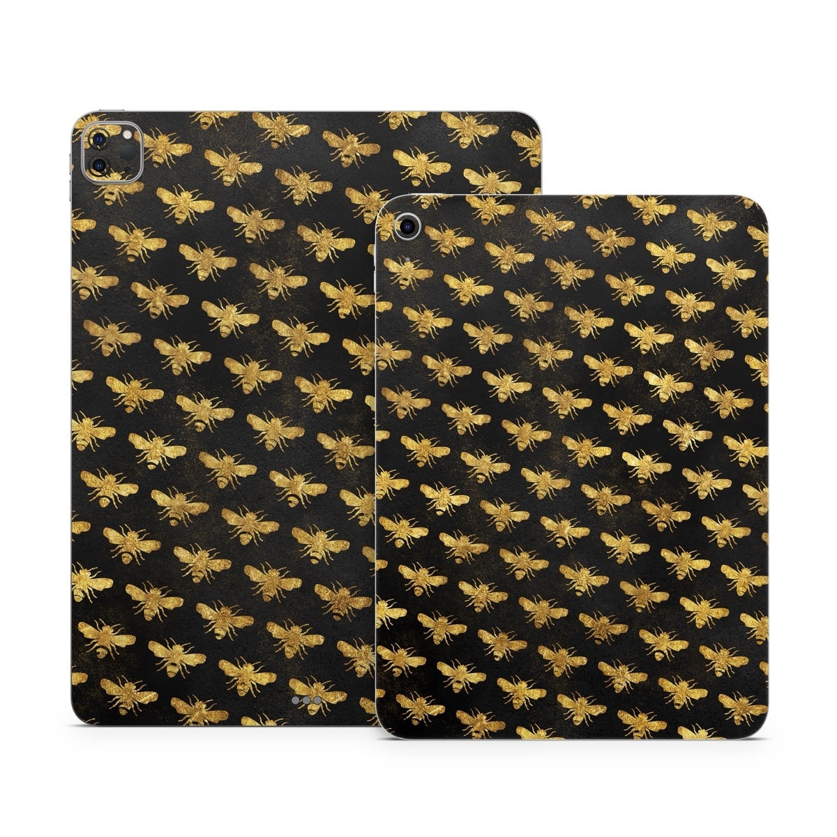 iStyles Apple iPad Series Skin design of Pattern, Yellow, Flower, Design, Plant, Wildflower, Textile, Metal, with black, yellow colors, and tagged with patterns, animals, bee, bees, bugs, fashion, gold, insect.