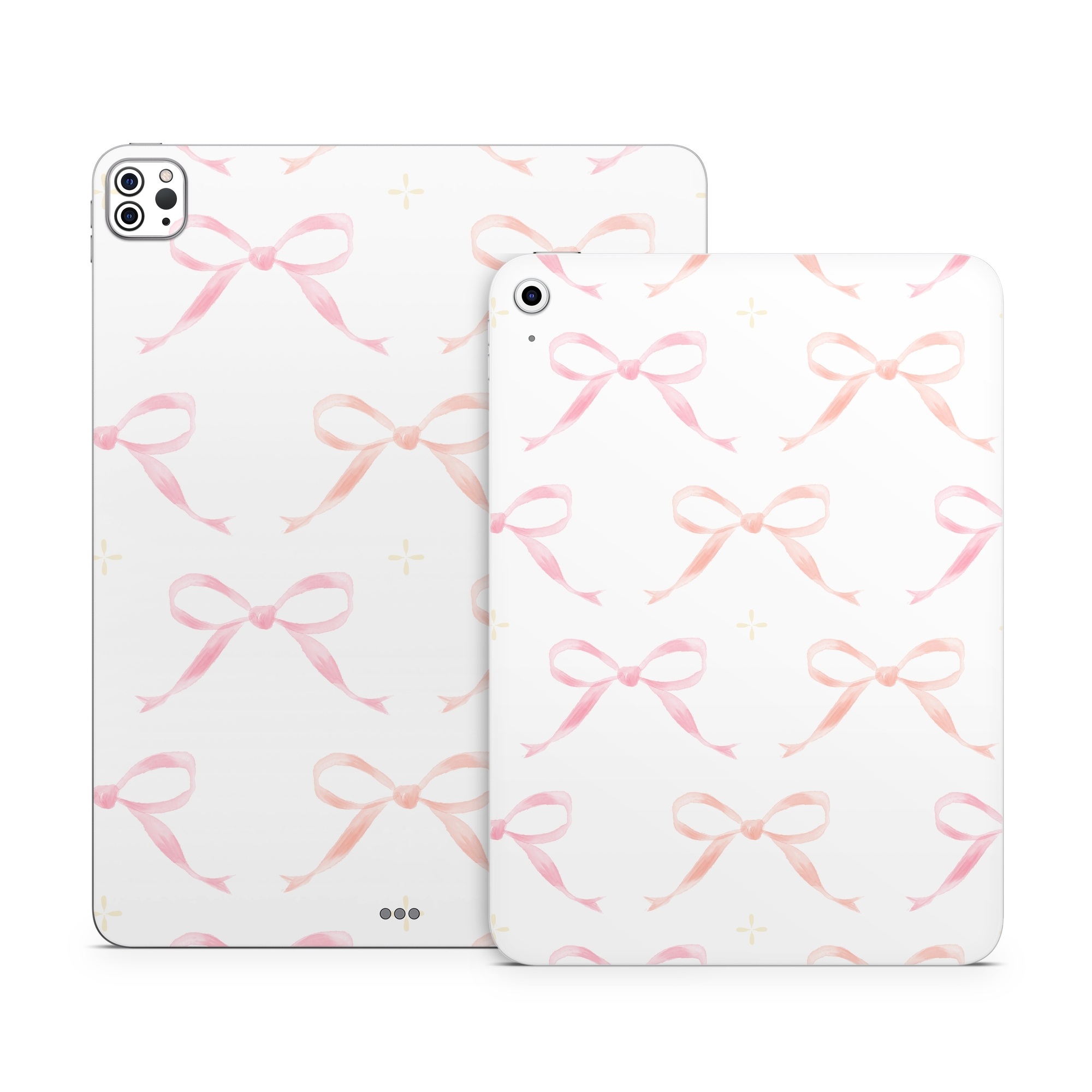 iStyles Apple iPad Series Skin design of Textile, Rectangle, Pink, Motif, Font, Magenta, Symmetry, Pattern, Art, Peach, with white, pink, orange colors, and tagged with patterns, objects, ribbon, showlace, pretty.