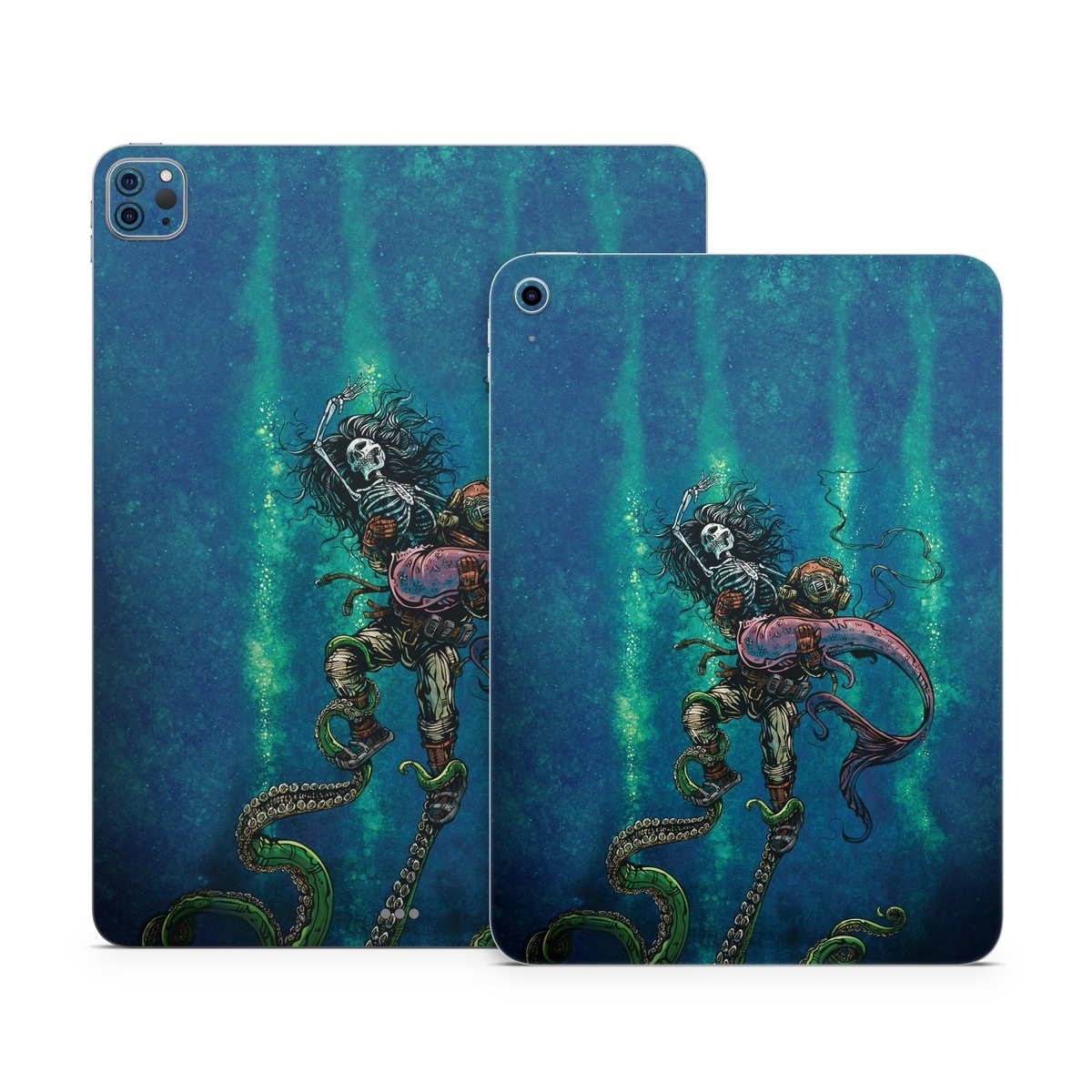 iStyles Apple iPad Series Skin design of Water, Fluid, Underwater, Marine invertebrates, Marine biology, Electric blue, Liquid, Recreation, Underwater diving, Art, with blue, green, orange, purple, pink, black, white, gray colors, and tagged with skulls, animals, fish, octopus.