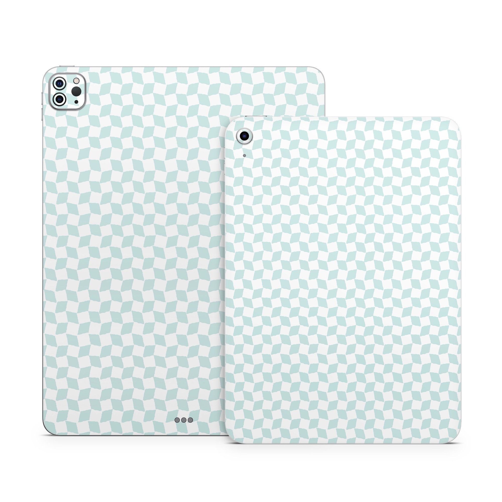 iStyles Apple iPad Series Skin design of Blue, Azure, Art, Font, Aqua, Rectangle, Floor, Flooring, Material property, Symmetry, with white, blue colors, and tagged with patterns, checkered, pattern.