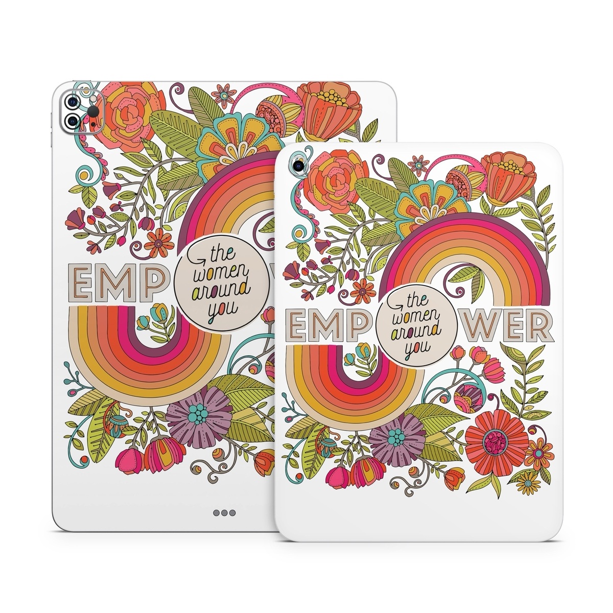 iStyles Apple iPad Series Skin design of Botany, Flower, Font, Creative arts, Petal, Circle, Pattern, Art, Visual arts, Floral design, with white, red, yellow, orange, green, blue colors, and tagged with flowers, signs, flowers, rainbow, empower, women, around, you.