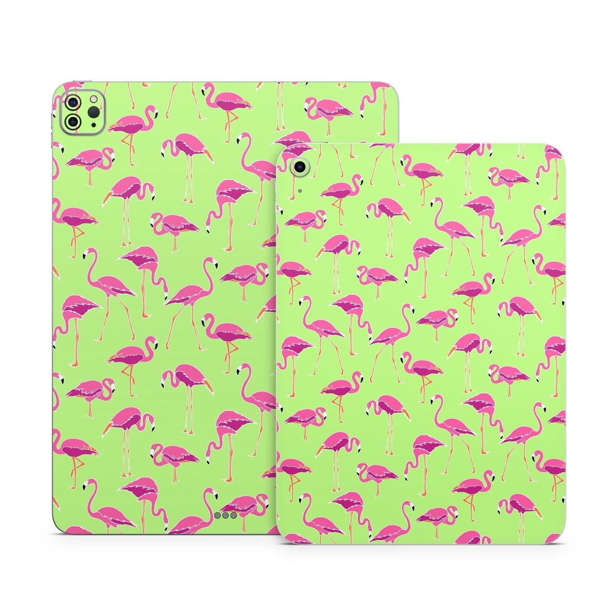 iStyles Apple iPad Series Skin design of Pink, Green, Red, Pattern, Wrapping paper, Textile, Design, Flamingo, Line, with pink, green colors, and tagged with patterns, animals, animals, birds, flamingo, nature.