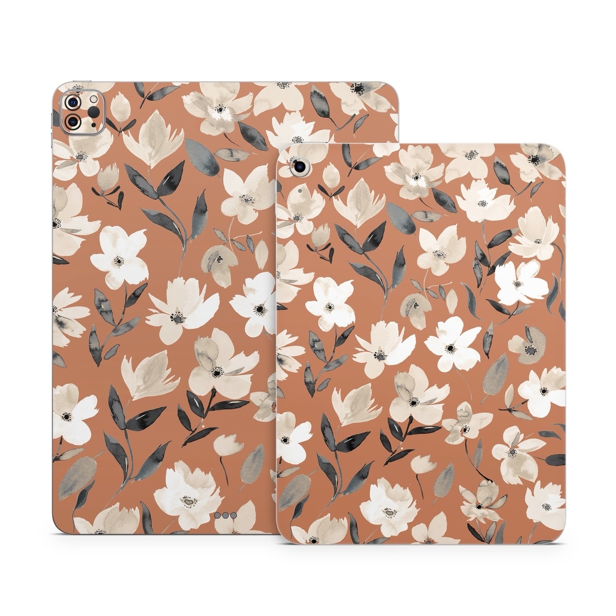 iStyles Apple iPad Series Skin design of Flower, Plant, Textile, Botany, Petal, Gesture, Line, Font, Groundcover, Art, with brown, white, gray, black colors, and tagged with patterns, flowers, spring, white, flowers.