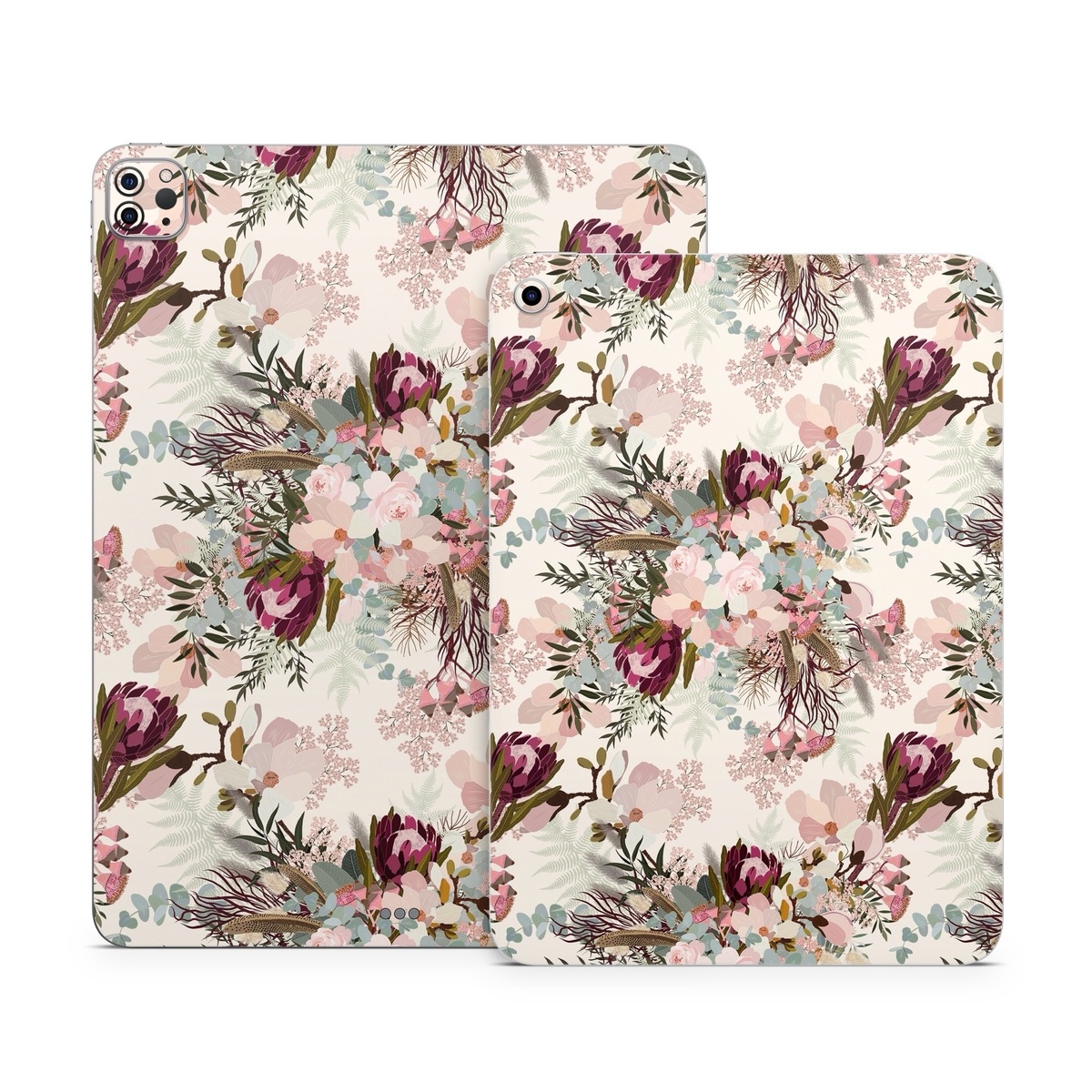 iStyles Apple iPad Series Skin design of Pink, Pattern, Lilac, Flower, Plant, Petal, Floral design, Textile, Design, Blossom, with white, red, pink, blue, brown colors, and tagged with patterns, flowers, nature, bouquet, filigree, floral, flower, flowers, pastel.