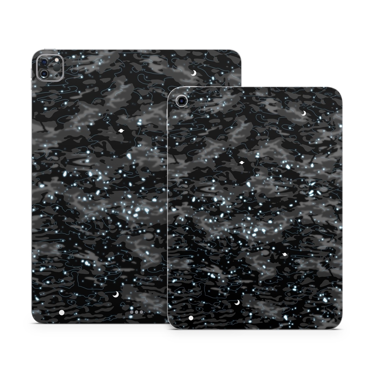 iStyles Apple iPad Series Skin design of Black, Water, Space, Black-and-white, Granite, with blue, white, gray, blue colors, and tagged with space, patterns, black, blue, camo, galaxy, space, stars, universe.