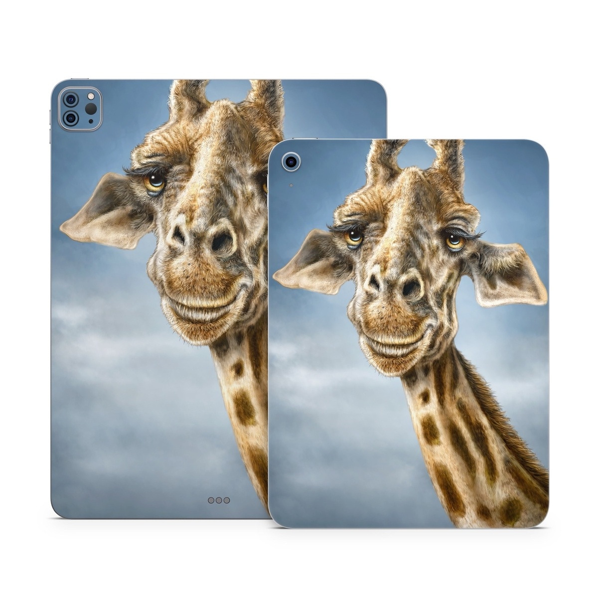 iStyles Apple iPad Series Skin design of Giraffe, Giraffidae, Terrestrial animal, Wildlife, Head, Snout, Organism, Adaptation, Close-up, Neck, with gray, black, blue, green colors, and tagged with animals.