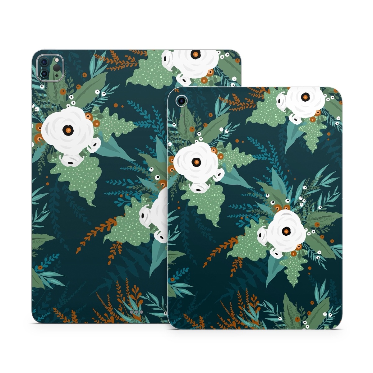 iStyles Apple iPad Series Skin design of Pattern, Branch, Tree, Illustration, Design, Plant, Textile, Art, Visual arts, Space, with green, white, red, blue colors, and tagged with patterns, flowers, blue, florals, flowers, garden, green, pattern.