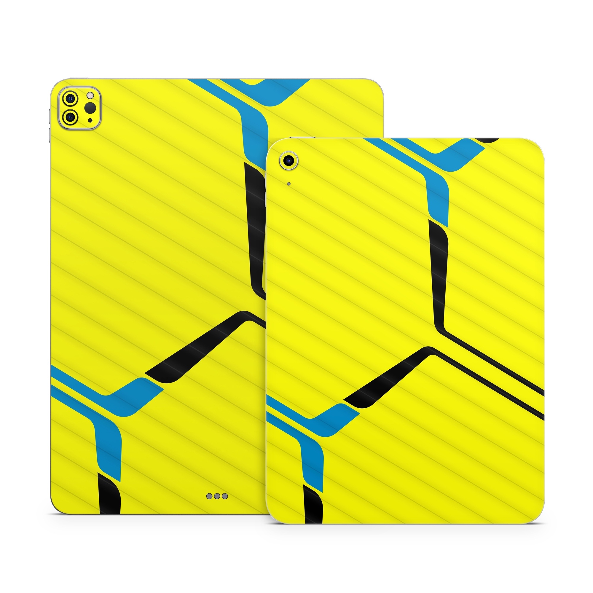 iStyles Apple iPad Series Skin design of Azure, Triangle, Font, Parallel, Symmetry, Pattern, Electric blue, Symbol, Rectangle, Design, with yellow, blue colors, and tagged with patterns, hexagon, pattern, lines.