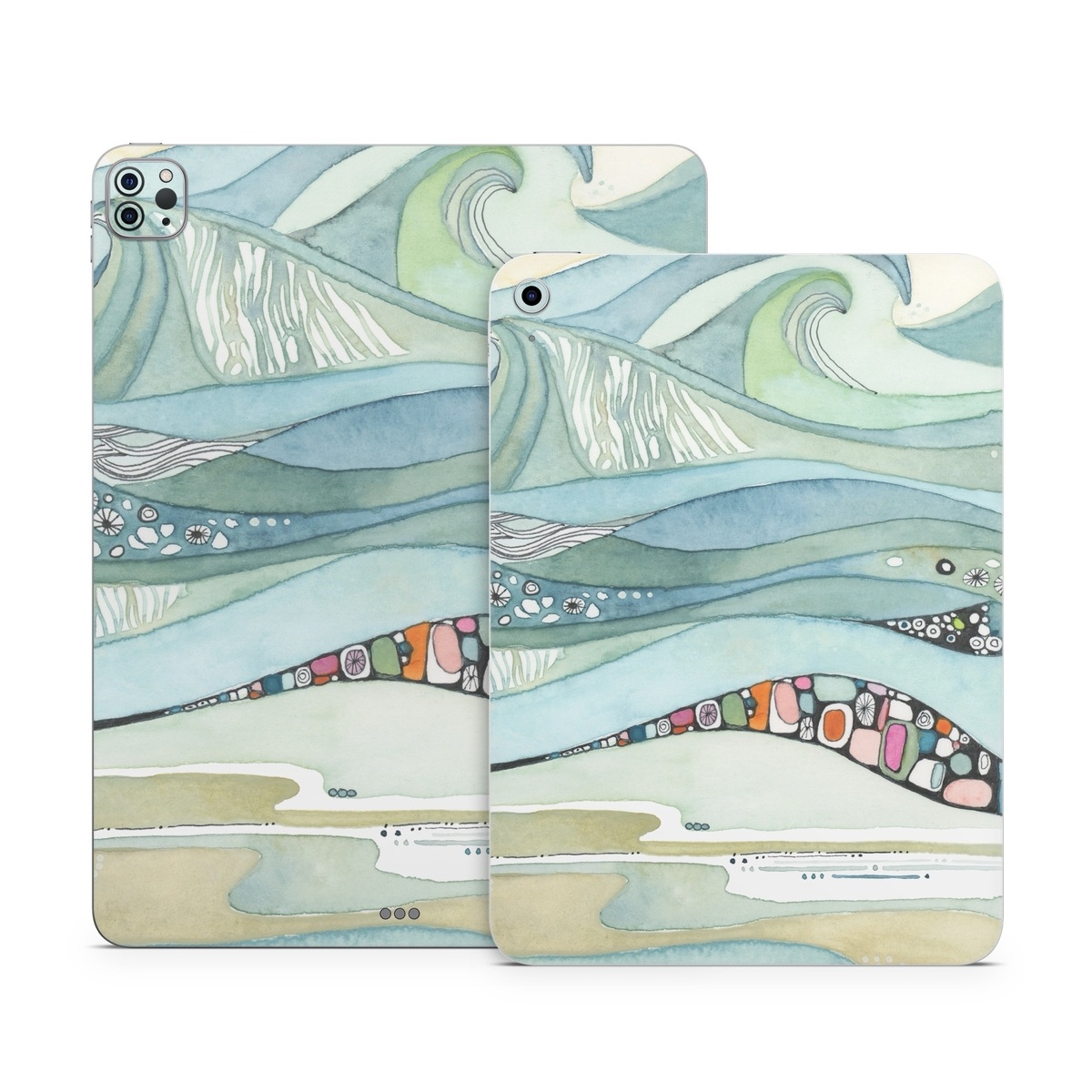iStyles Apple iPad Series Skin design of Line, Illustration, Art, with blue, green, orange, pink, black, white, yellow colors, and tagged with abstract, flowers, beach, earthtones, neutrals, watercolor, waves.