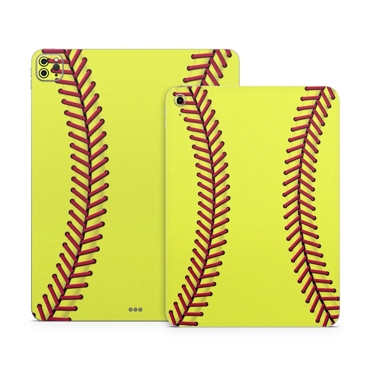 iStyles Apple iPad Series Skin design of Yellow, Plant, Line, Slope, Terrestrial plant, Font, Art, Parallel, Circle, Rectangle, with yellow, red colors, and tagged with lookslike, sports, objects, softball, baseball, sport, game.