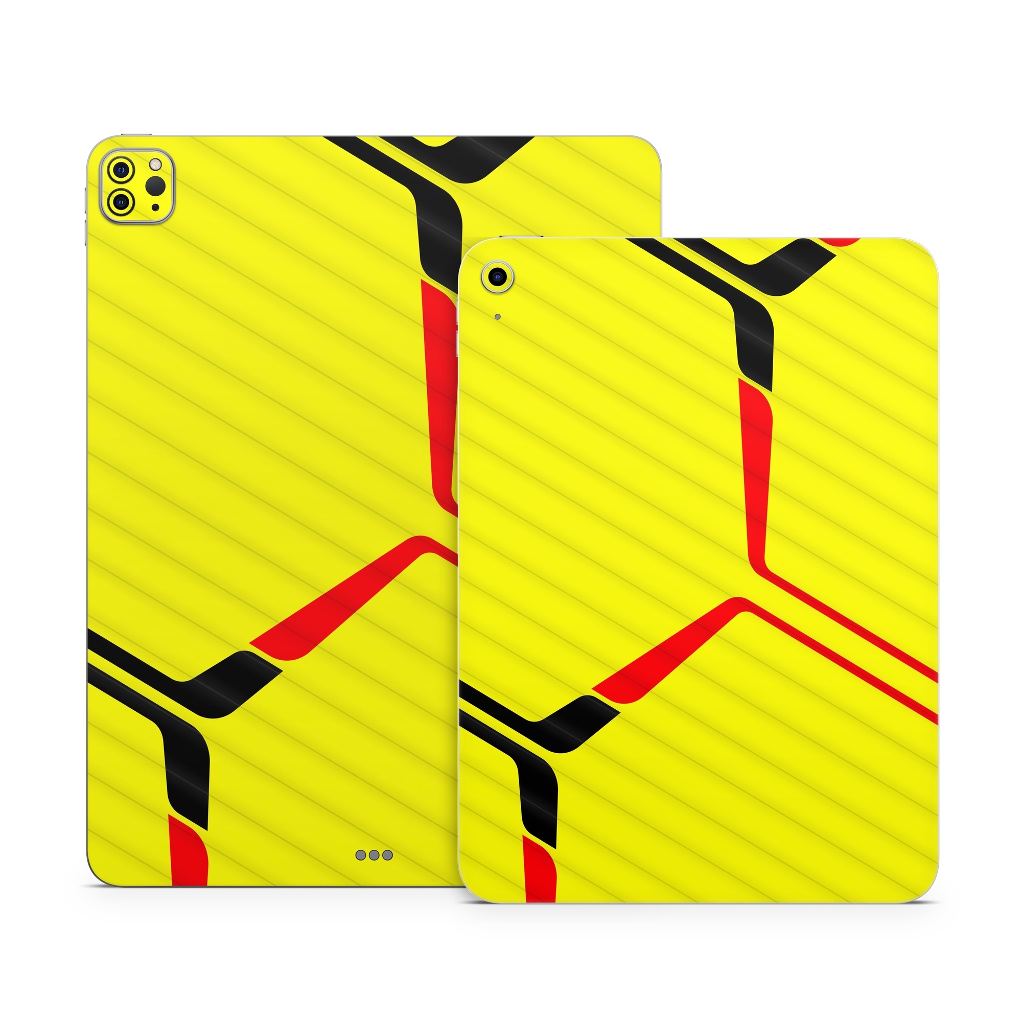 iStyles Apple iPad Series Skin design of Rectangle, Yellow, Parallel, Font, Tints and shades, Wood, Triangle, Pattern, Graphics, Symmetry, with yellow, black, red colors, and tagged with patterns, hexagon, pattern, lines.