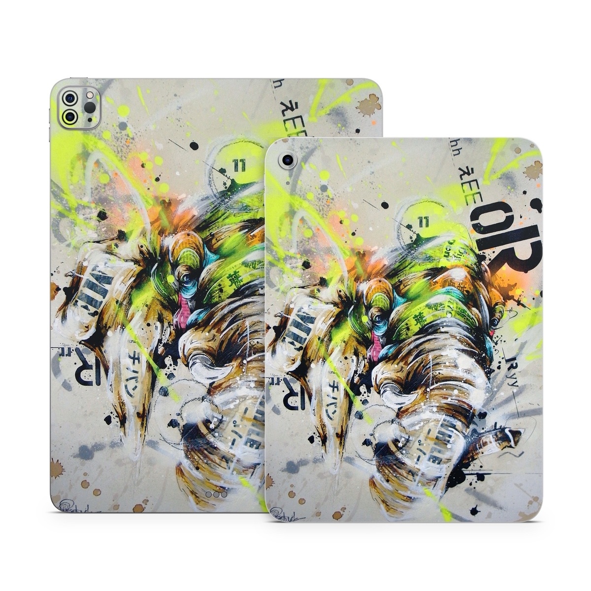 iStyles Apple iPad Series Skin design of Watercolor paint, Graphic design, Illustration, Acrylic paint, Art, Modern art, Painting, Visual arts, Paint, Graphics, with gray, black, green, red, blue colors, and tagged with abstract, animals.