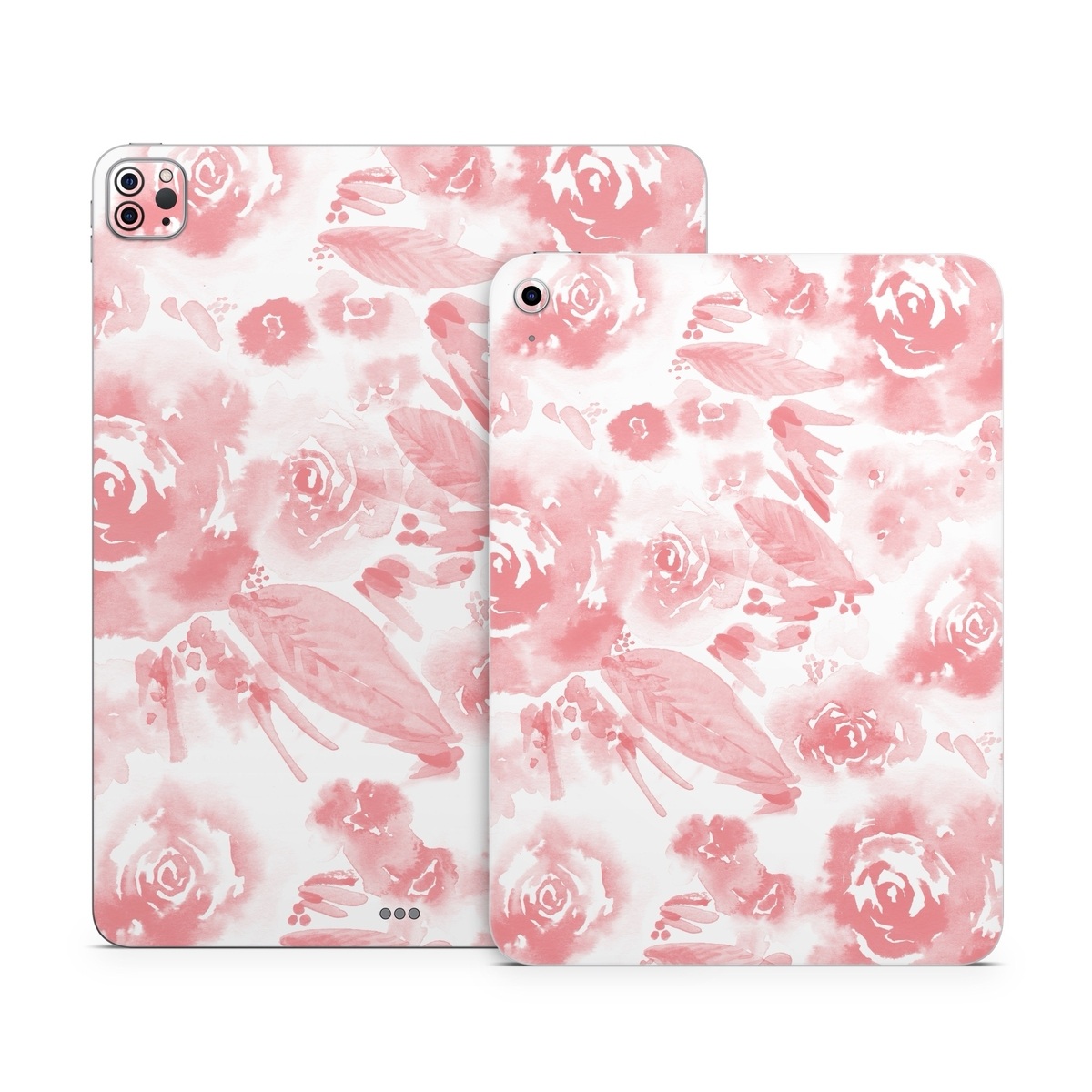 iStyles Apple iPad Series Skin design of Pink, Pattern, Rose, Design, Floral design, Rose family, Garden roses, Petal, Flower, Textile, with white, red, pink colors, and tagged with flowers, patterns, blush, blushflowers, flowers, pink, watercolor.