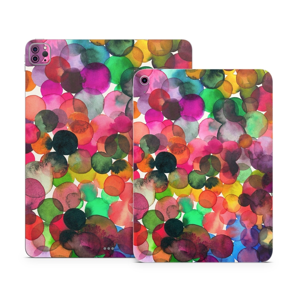 iStyles Apple iPad Series Skin design of Colorfulness, Fashion accessory, with red, white, pink, purple, blue, green, black, yellow, orange colors, and tagged with patterns, abstract, bright, colorful, dots, drops, vivid, watercolor.