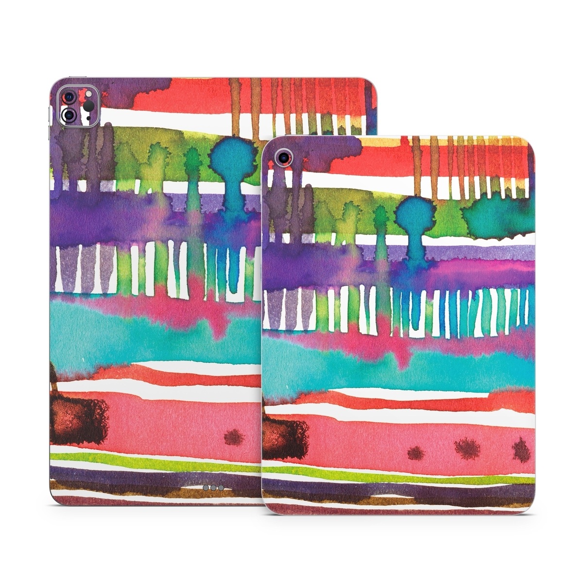 iStyles Apple iPad Series Skin design of Textile, Art, Magenta, Hair accessory, with white, red, orange, yellow, green, blue, purple, brown, pink colors, and tagged with patterns, abstract, abstract, bright, colorful, nature, watercolor.