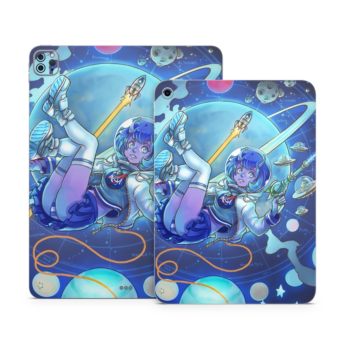 iStyles Apple iPad Series Skin design of Cartoon, Illustration, Graphic design, Games, Space, Design, Anime, Art, Graphics, Fictional character, with blue, white, yellow, purple, green, red, orange, black colors, and tagged with people, fineart, fantasy, space, objects, alien, aliens, anime, astrology, girl, outerspace, pinup, space.